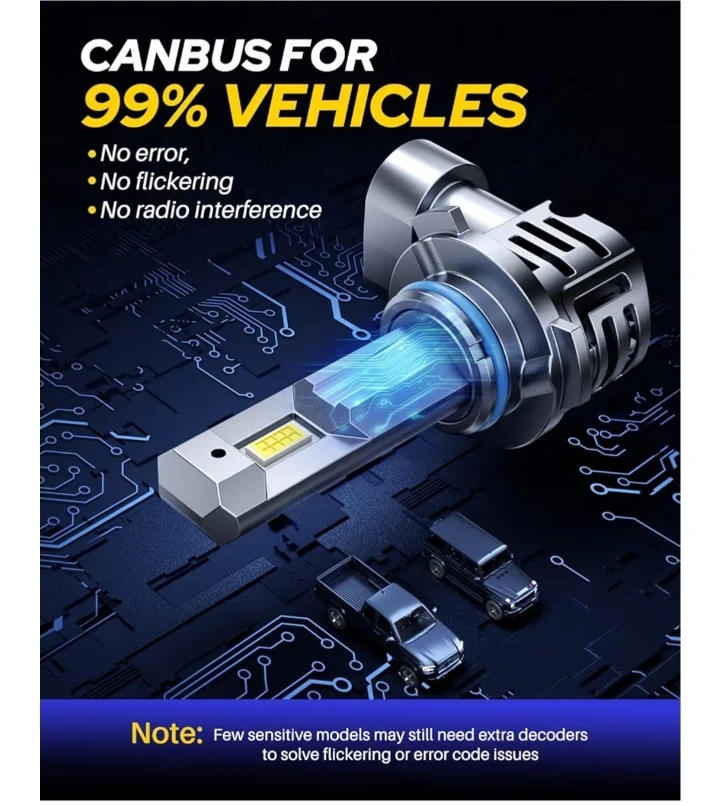 Selling a new pack of AUTOONE 9006/HB4 LED headlight bulbs! These are fanless Canbus bulbs, designed to be 400% brighter for low beam headlights or fog lights. They're plug and play, and a halogen 9006 HB4 replacement. These bulbs are designed for 99% of vehicles with no error, flickering, or radio interference.
