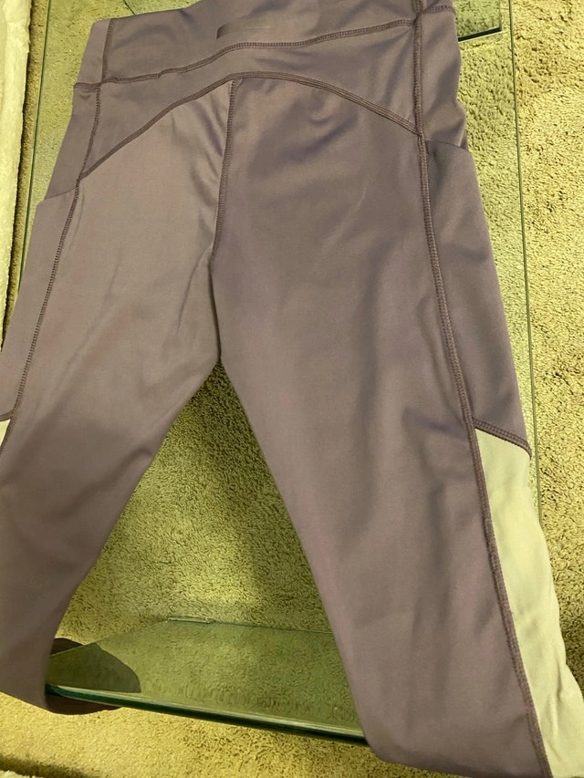 These Lululemon leggings are perfect for workouts or just lounging around! They are in good condition, with a stylish design and comfortable fit. They feature a cropped length and convenient side pockets. * Brand: i.FiV5 * Size: Small * Colour: Purple * Style: Cropped with Pockets Ready to add a little pep to your step? Grab these leggings and let's get moving! Disclaimer: If the ad is up, the leggings are available!