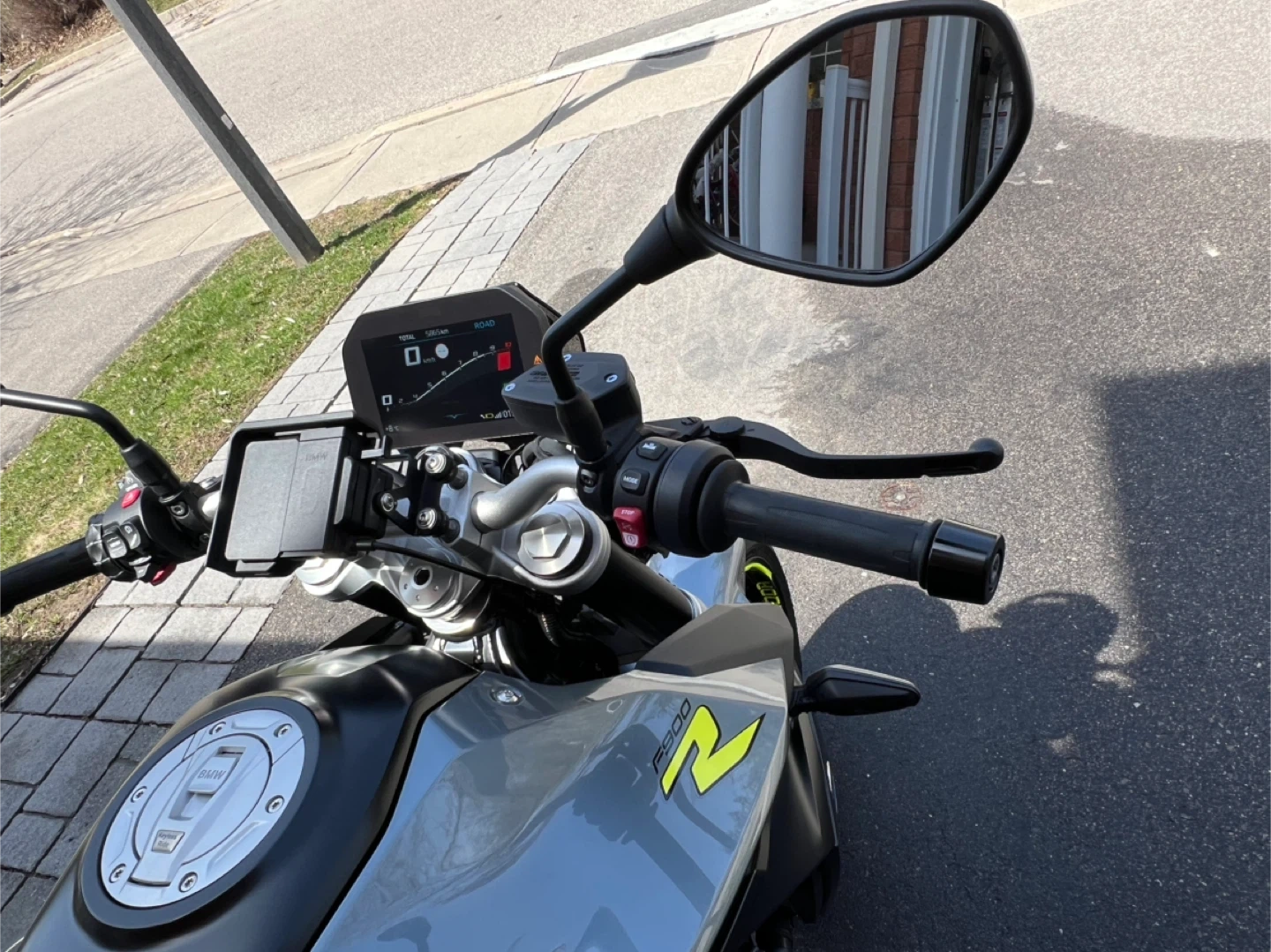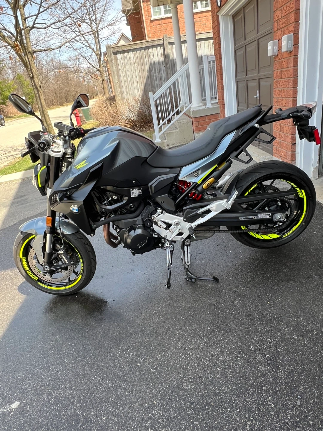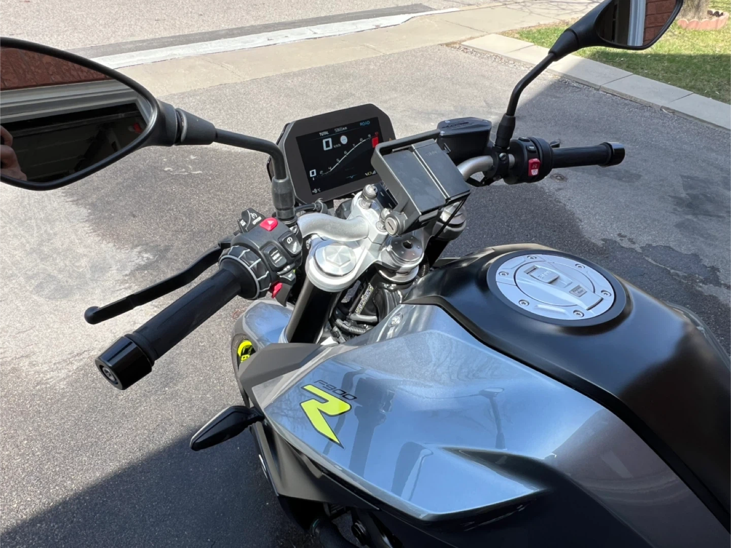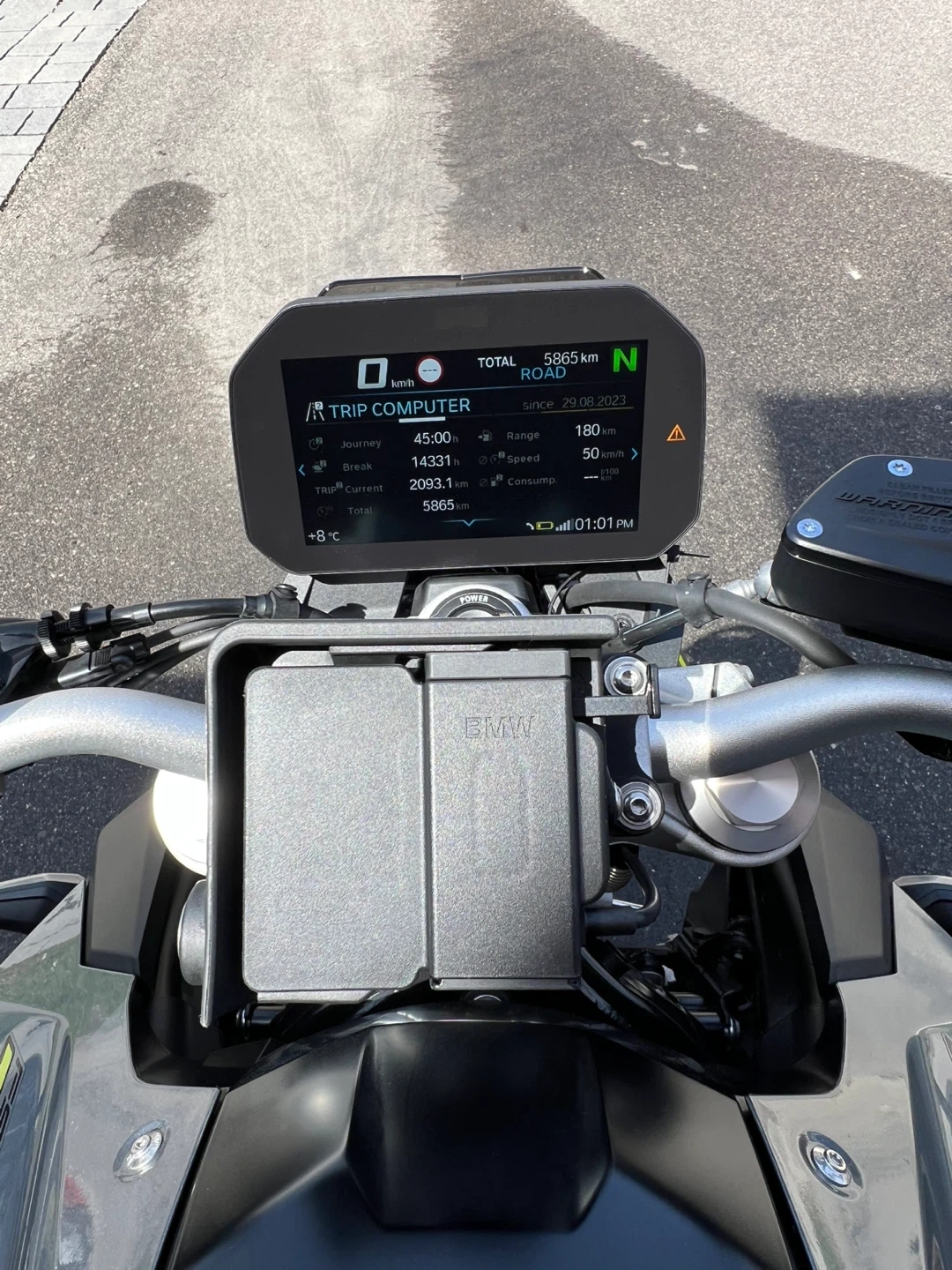 Selling a BMW F900R motorcycle. It's in great condition and ready for a new owner! The odometer reads 5865 km. It has a digital display and is a sleek grey colour. Perfect for cruising around town or hitting the open road!
