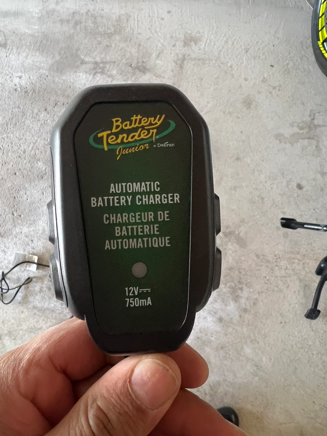 Built in Battery Tender Junior Smart Battery Charger and Maintainer, 0.75-Amp, 12V for easy disconnect.