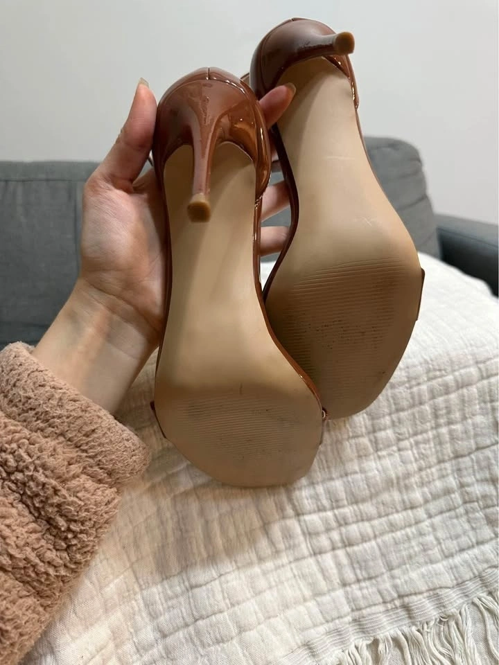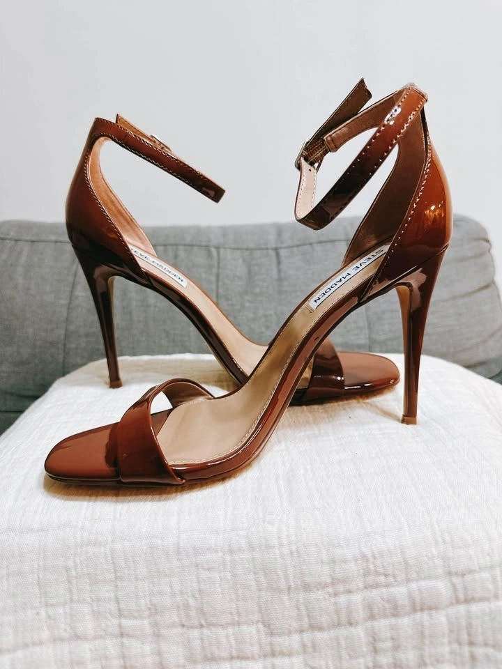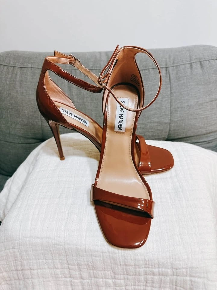 Gorgeous tan coloured ankle strap heels with open toe style, never been worn as it's slightly too big. Steve Madden- KASSANDRA heels