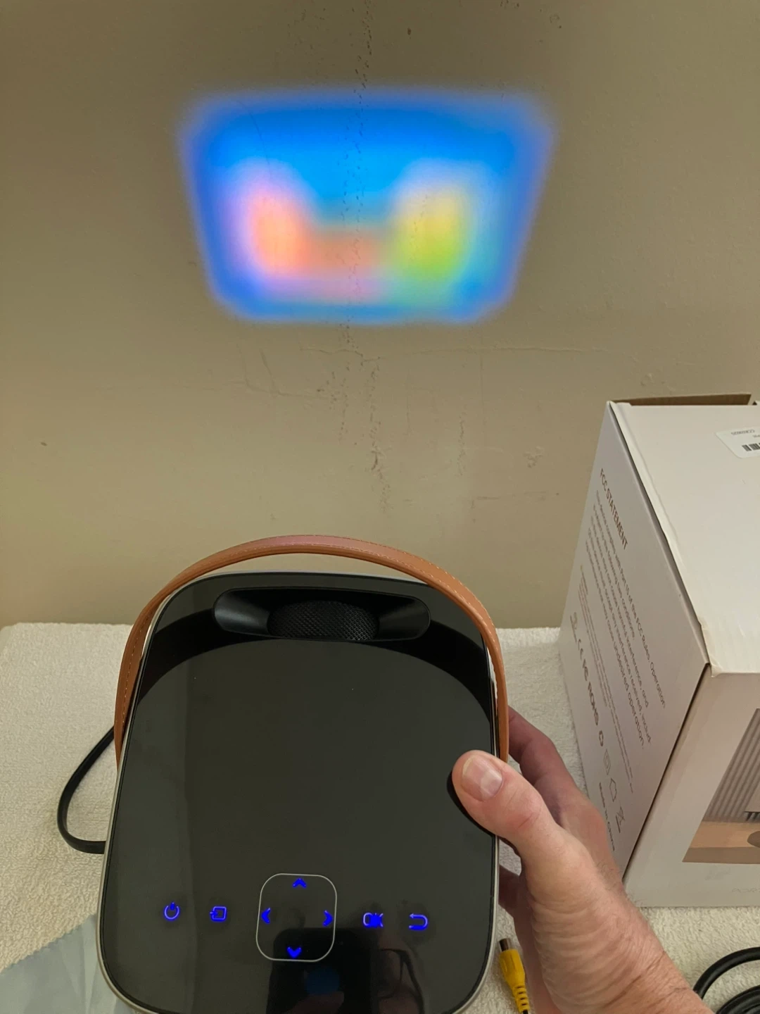 Selling a TOPTRO TR23 portable video projector. It comes with its original box and all the necessary components to get you started. Enjoy a great viewing experience in a compact and portable design!. This is a used projector that still works great. No hand controls but you can control from the unit directly or by setting up your smart TV controls. No instructions but can get online. Ran out of ink for printer so sorry could not do myself. On sale on Amazon for $64.95. PICK UP AND CASH ONLY