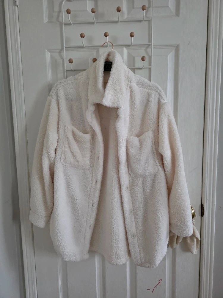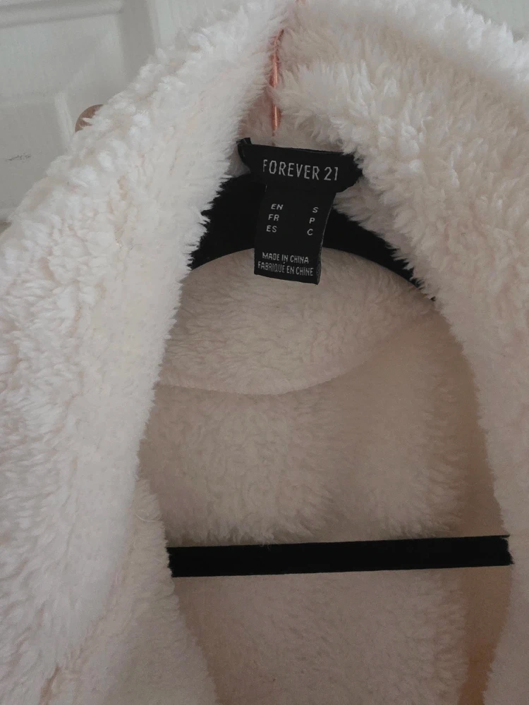 Cozy up in this Forever 21 sherpa jacket! It's a size small and in a lovely cream colour. Perfect for adding a touch of warmth and style to your outfits