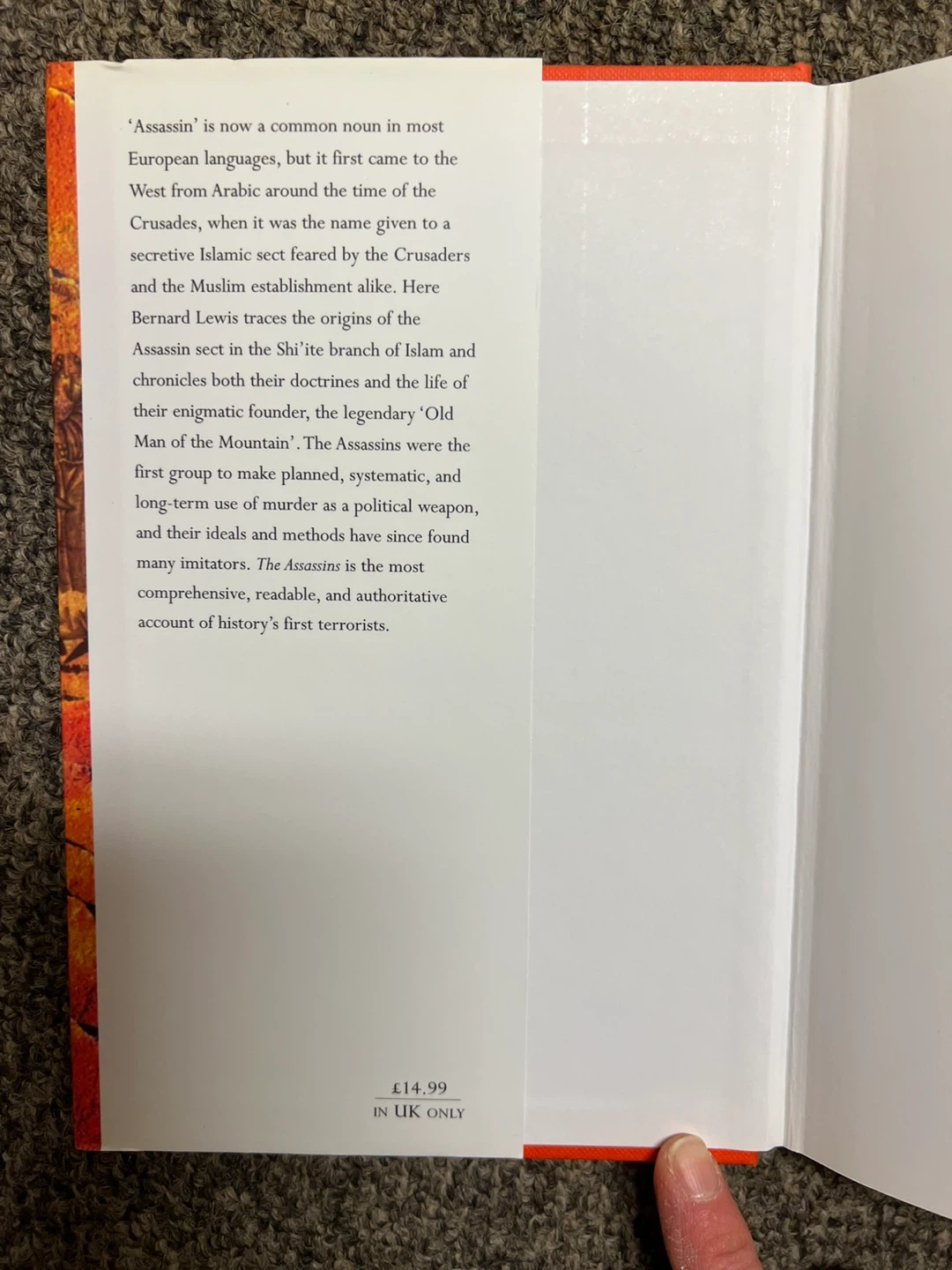 Selling a copy of "The Assassins: A Radical Sect in Islam" by Bernard Lewis. It offers a comprehensive account of history's first terrorists. The book explores the origins of the Assassin sect and their doctrines. A great read for anyone interested in history!