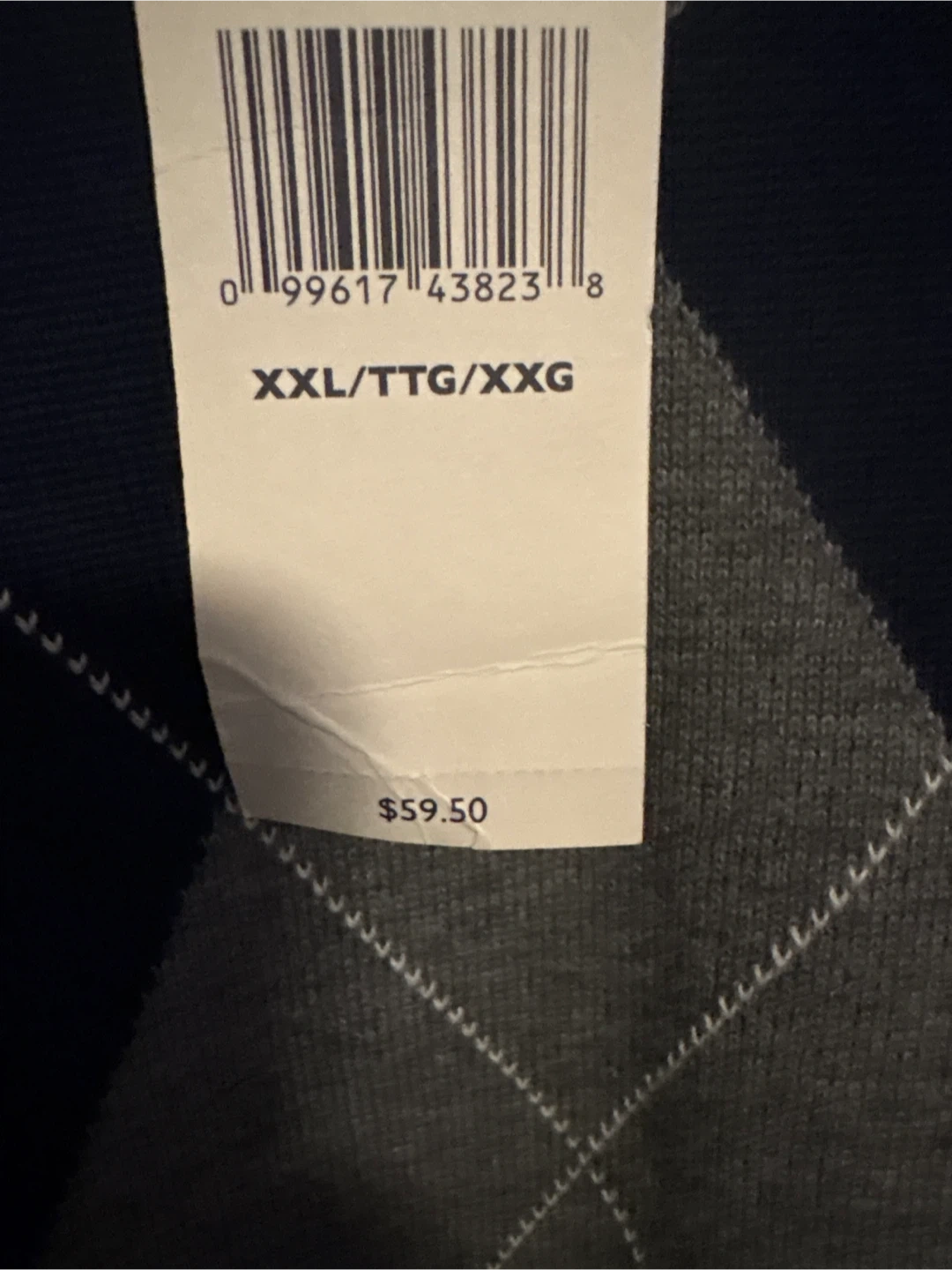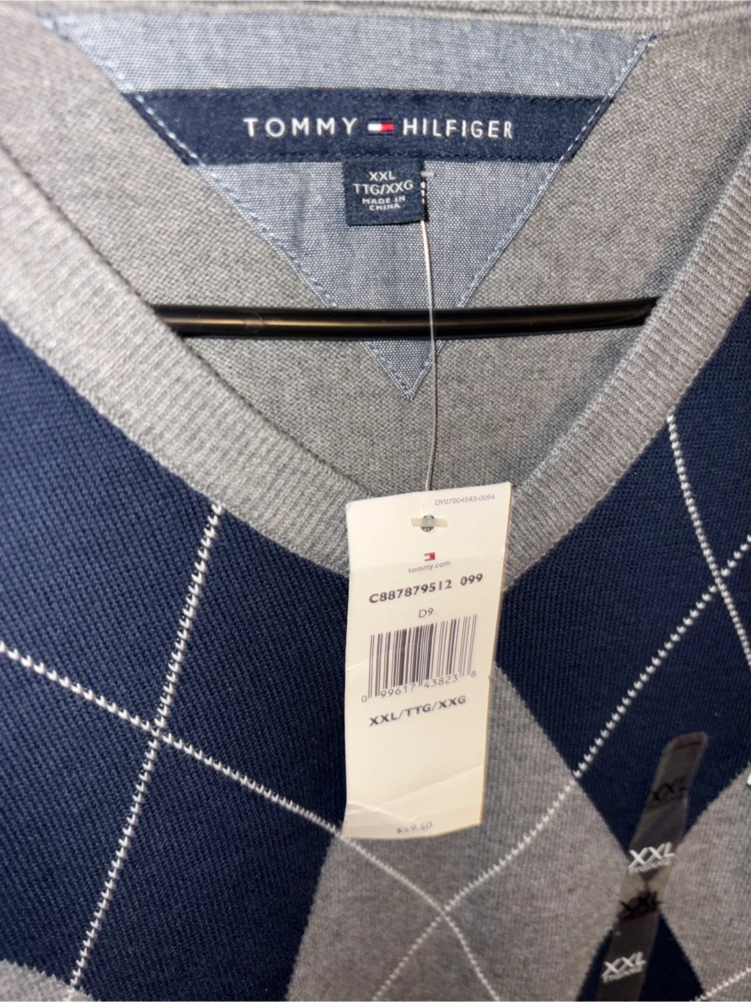 This is a brand new Tommy Hilfiger argyle sweater, still with tags! It's a size XXL and features a classic argyle pattern in navy and grey. Originally bought for $59.50!