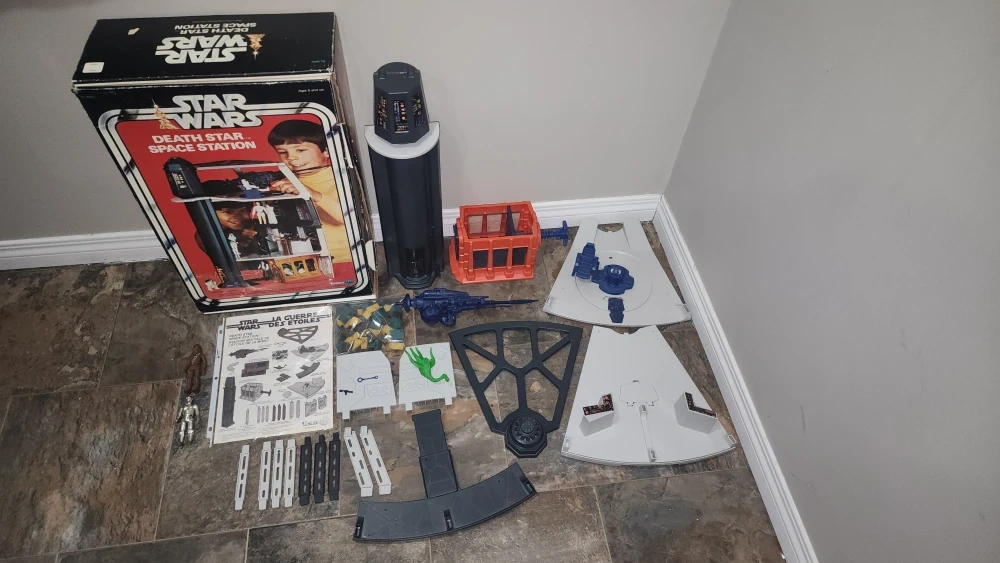 1978 star wars death star playset mint condition, missing 2 cardboard panels other then that it's complete. This set is very clean no smoke damage no broken tabs, windows look mint, all parts look new.