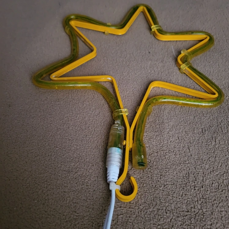Here's a fun star-shaped rope light! It's perfect for adding a bit of whimsy to any room. The electrical rating is 120V, 8.25W per series. It is designed for indoor use only
