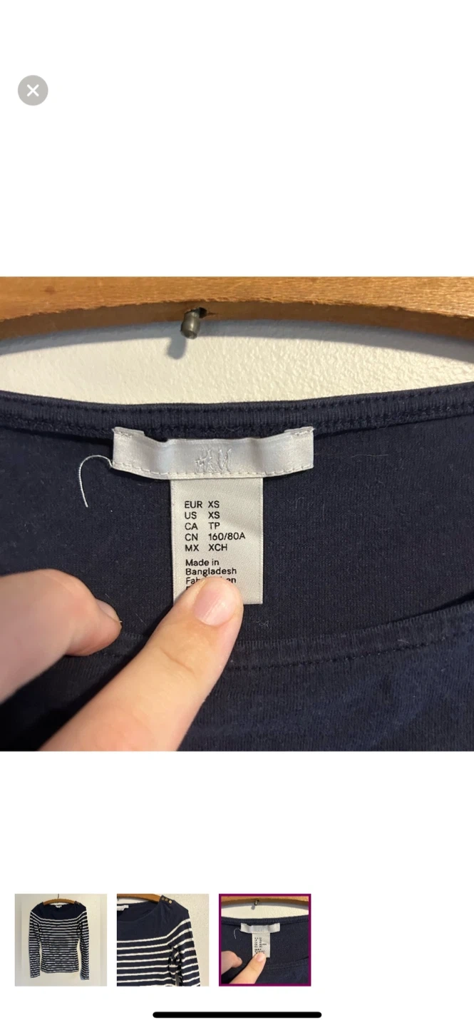 H&M brand. Long sleeve shirt. Navy blue & white striped. Size women’s xs. Brand new condition