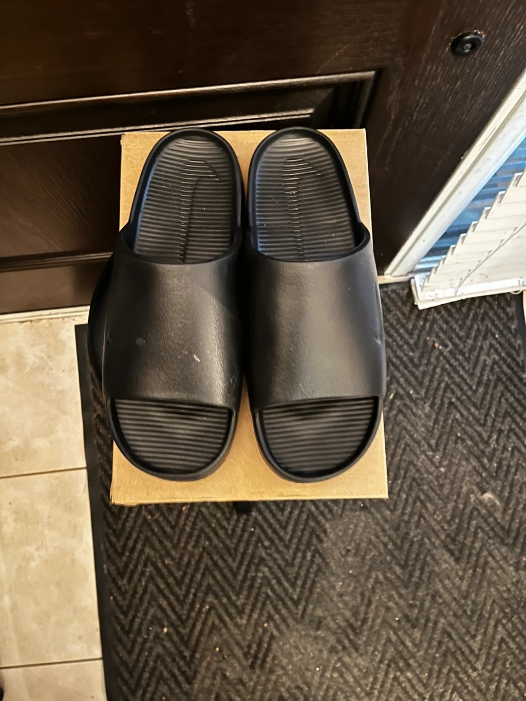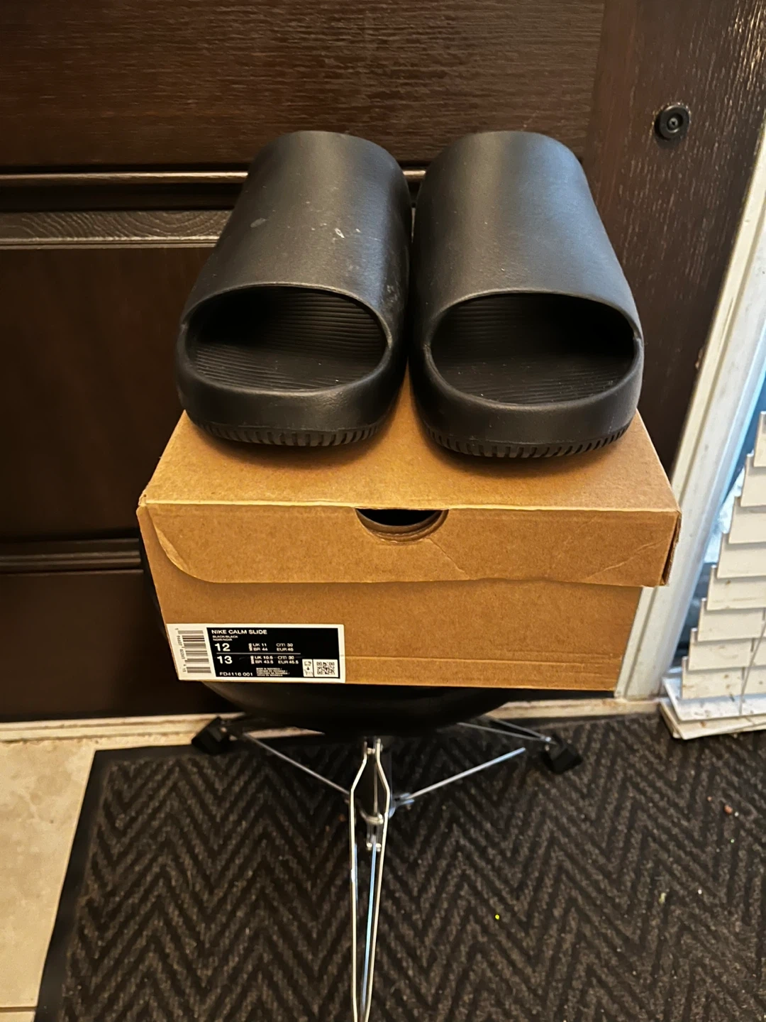 Selling a pair of Nike Calm Slides in black, men's size 13. They come with the original box.