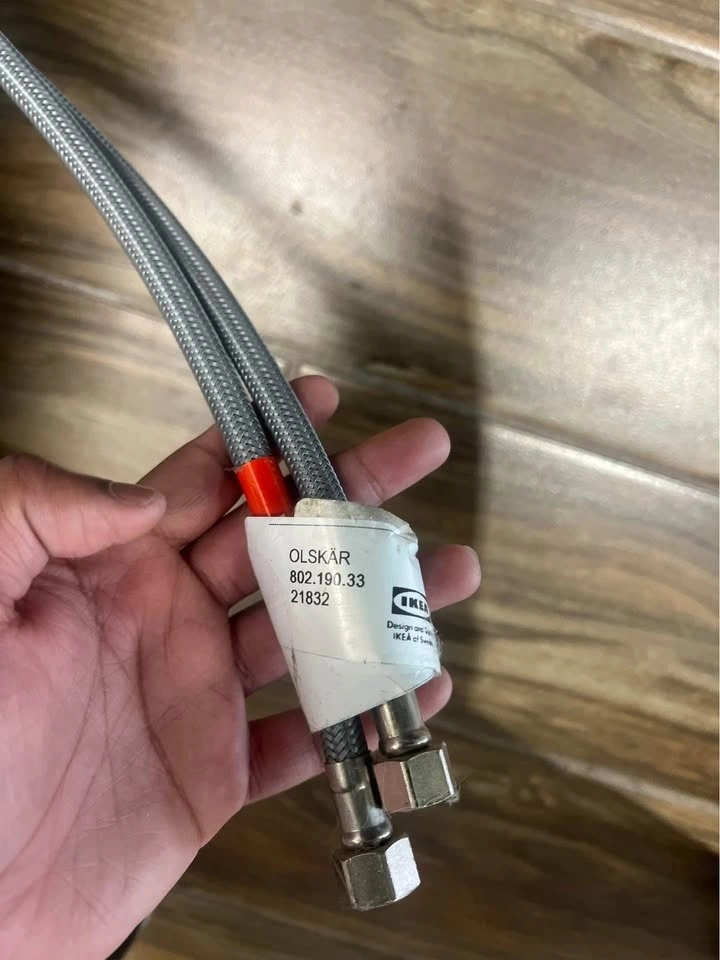 Faucet: IKEA’s OLSKÄR single-lever mixer tap (chrome finish), which comes with flexible braided hoses for hot and cold water connection.