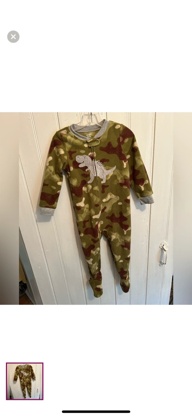 Carters brand. Fleece zip up sleeper. GRene & brown camo with grey Dino print. Size 2t. Brand new condition