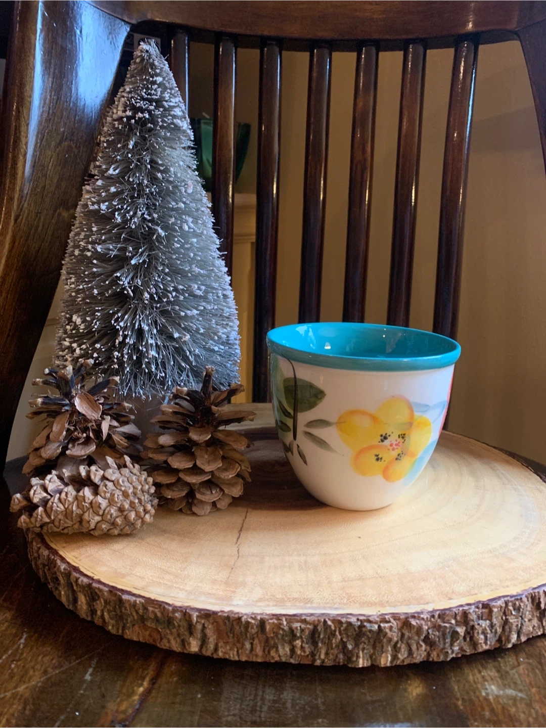 Here's a lovely mug from The Pioneer Woman! It's made of stoneware and features a beautiful hand painted floral design in turquoise, red, green and yellow. The mug is dishwasher and microwave safe, making it both pretty and practical for everyday use. This would make a pretty gift with a tea box and a tin of scones!