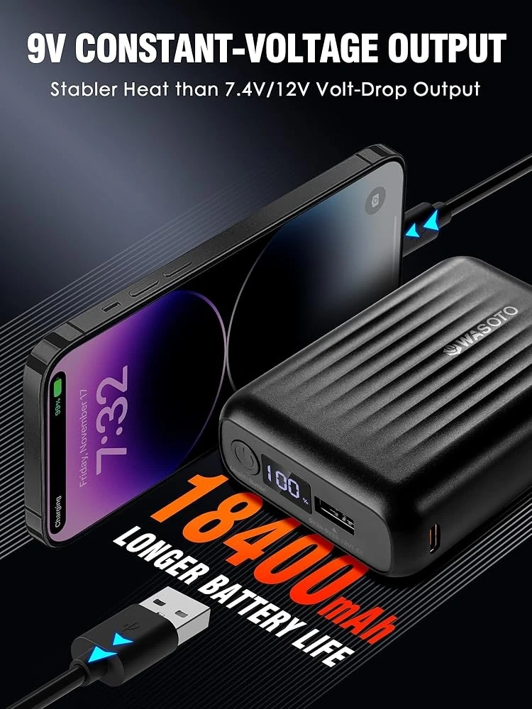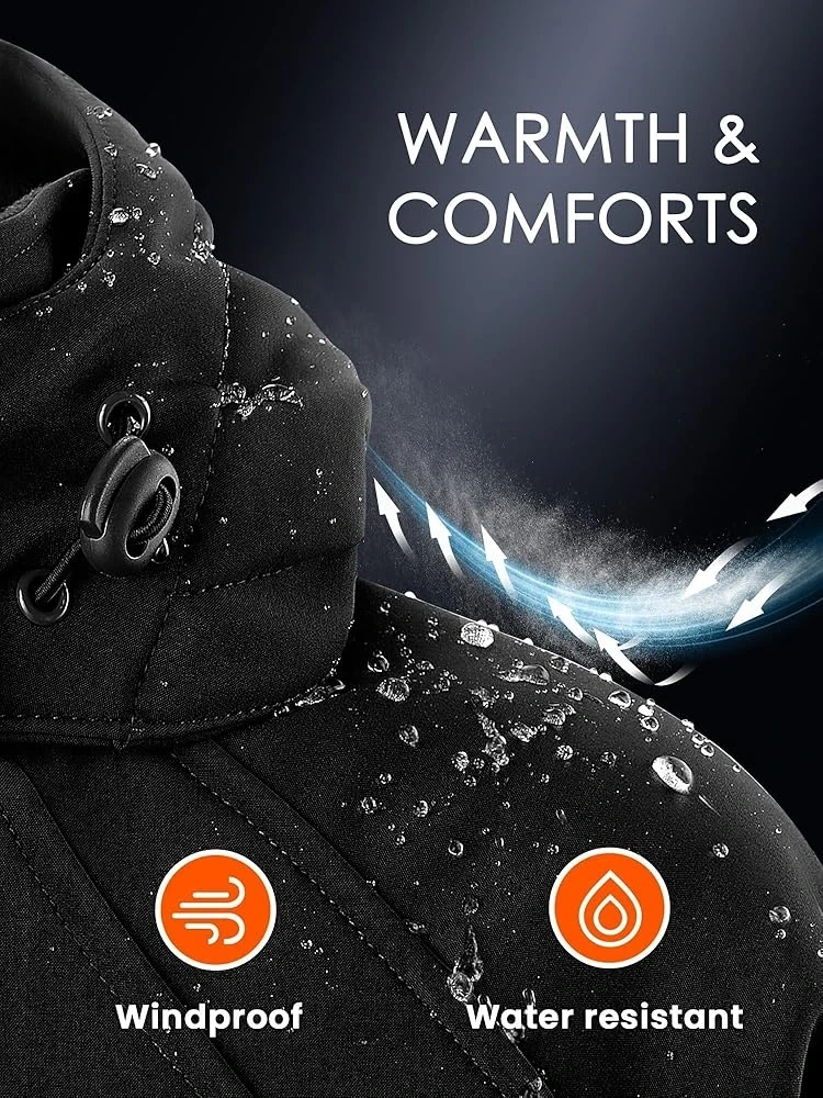 Stay warm and comfy with this WASOTO heated jacket! It's designed to be windproof and water-resistant, perfect for those chilly Canadian days. The jacket features independent switches for the front and back zones, and you can adjust between 3 heating levels to get just the right amount of warmth. Plus, the button LED can be turned off during heating for a light-out design. It also comes with a power bank for charging!