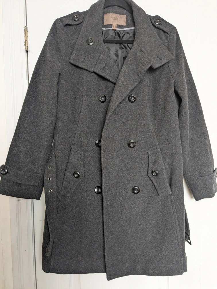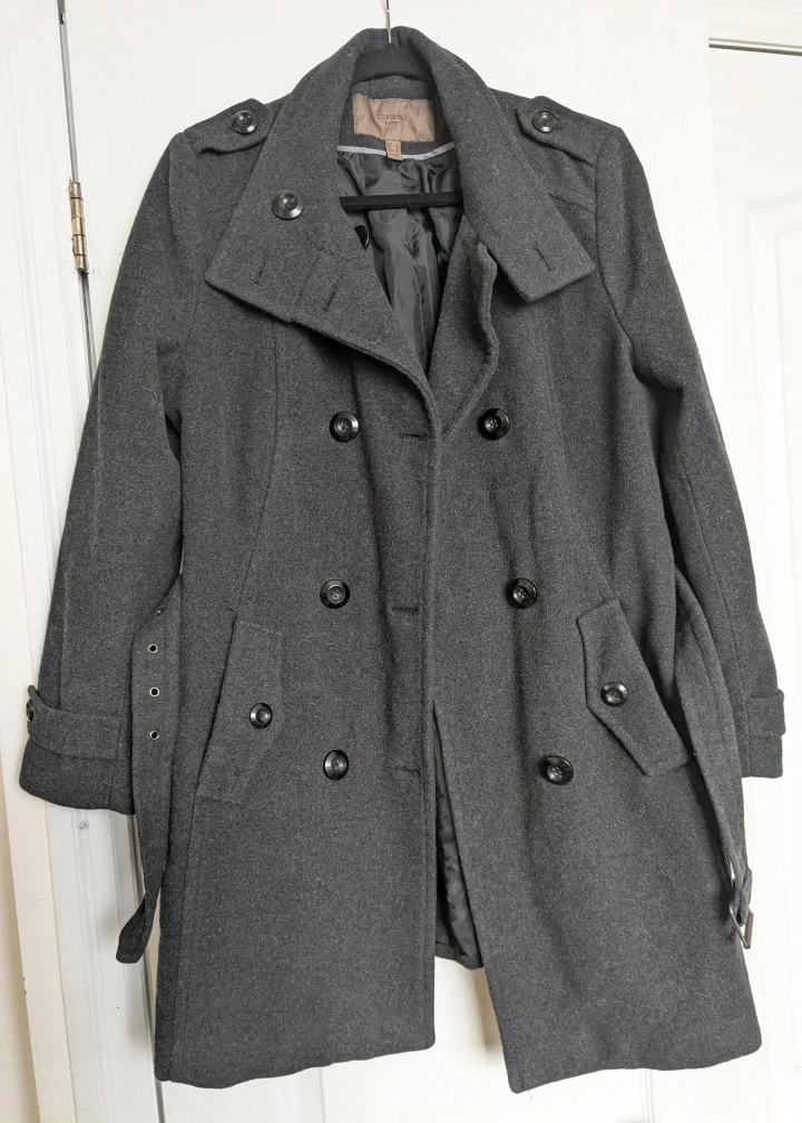 Here's a stylish Cortefiel Woman wool coat in a lovely grey colour! It's a size largel and would be a great addition to any wardrobe. Perfect for staying warm and looking chic during the cooler months!
