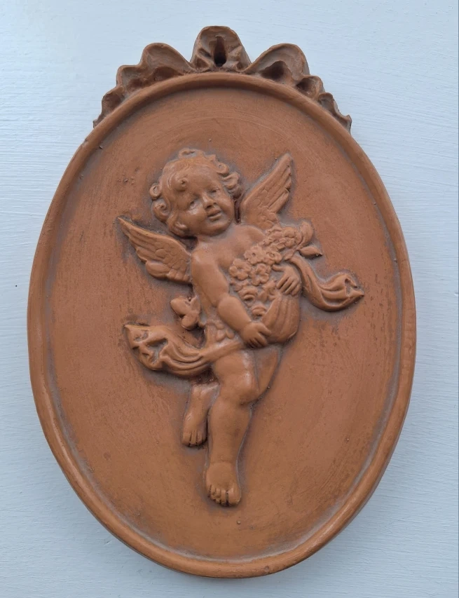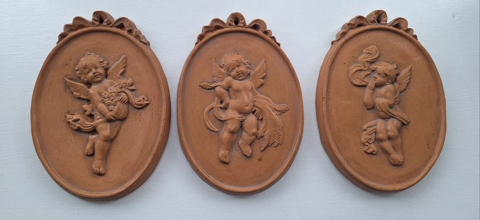 Set of three adorable angel wall plaques. Vintage Italy Art Dolfi Montelupo Tuscany Pottery. Cherub wall hanging.