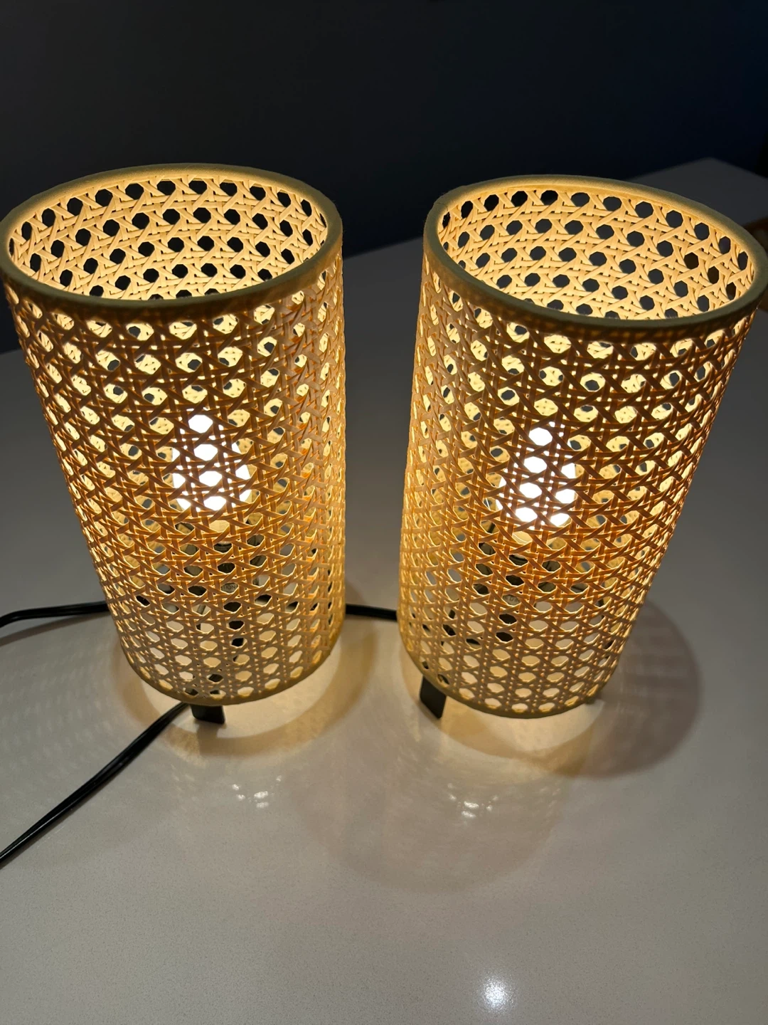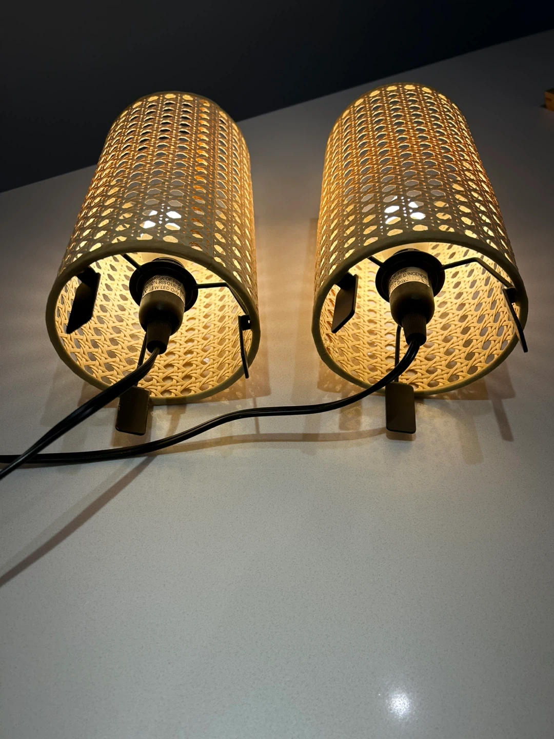 Selling a set of two IKEA SAXHYTTAN table lamps! They have a lovely woven design and give off a warm, inviting glow. Each lamp is 13 cm wide and 28 cm tall. Originally purchased for $19.99 each, these lamps are in great condition and ready to brighten up your space