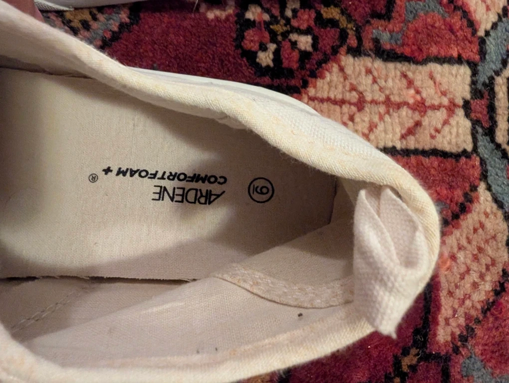 I'm decluttering my wardrobe and selling this pair of Ardene white canvas sneakers in size 9. They're in new, never worn condition and ready for a new owner!