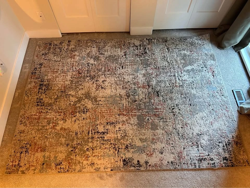 Beautiful multicoloured area rug. Purchased from HomeSense in 2020. There is one stain as pictured in last photo, however, if you have a carpet cleaner, you could probably get it out.