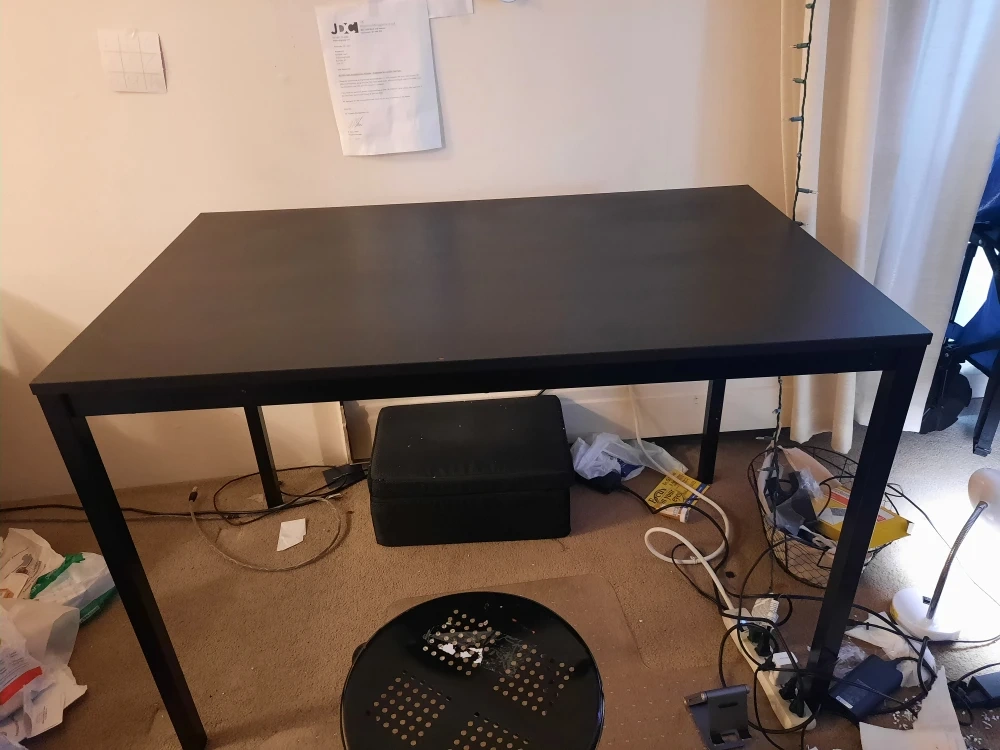 Selling a black table. It's in good condition and ready for a new home. Perfect for a dining room or office space