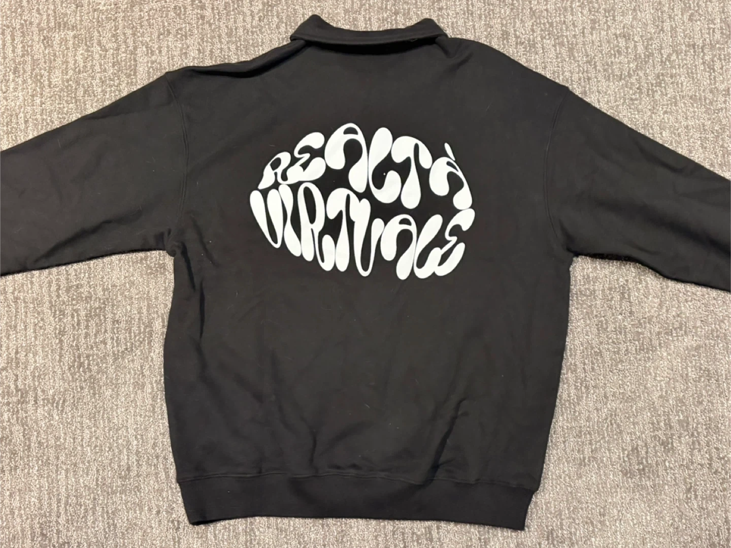 Selling a black long sleeve polo from Realtà Virtuale. The polo has a unique design on the back. It's in great condition and ready for a new owner!