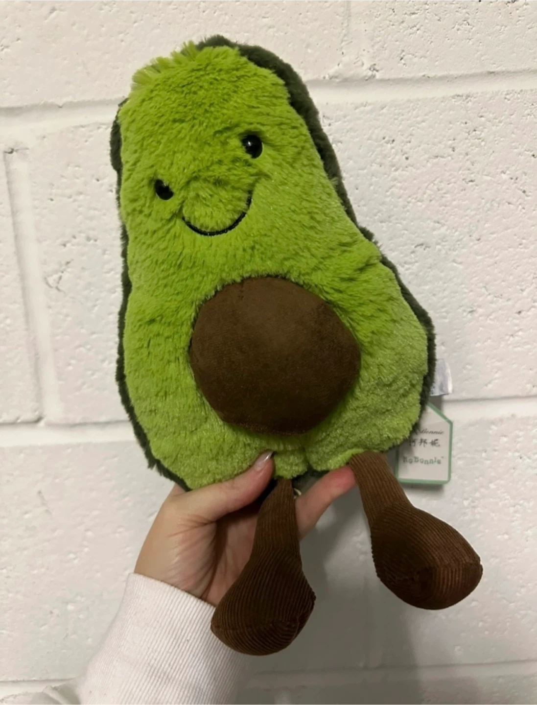 Selling a super cute Jellycat Avocado Amuseable plushie! It's in great condition and ready for a new home. This adorable avocado has a sweet smile and corduroy legs. Perfect for cuddling or as a fun decoration!
