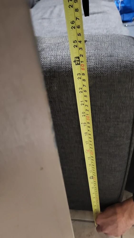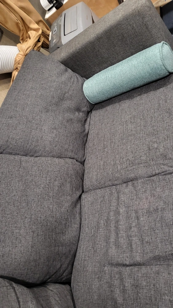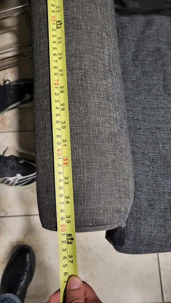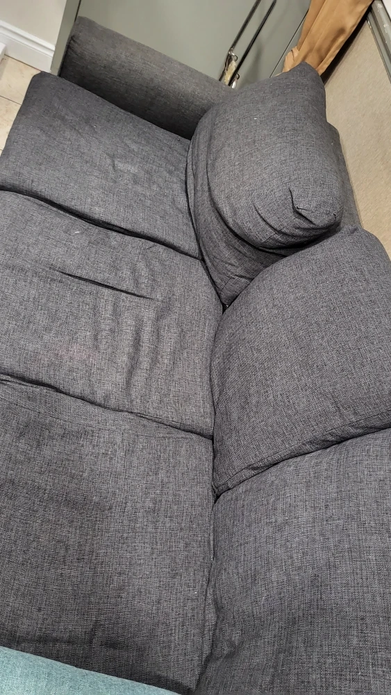 Selling a grey sectional sofa. The dimensions are approximately 82cm in depth and 93cm in height. It's in good condition and ready for a new home!