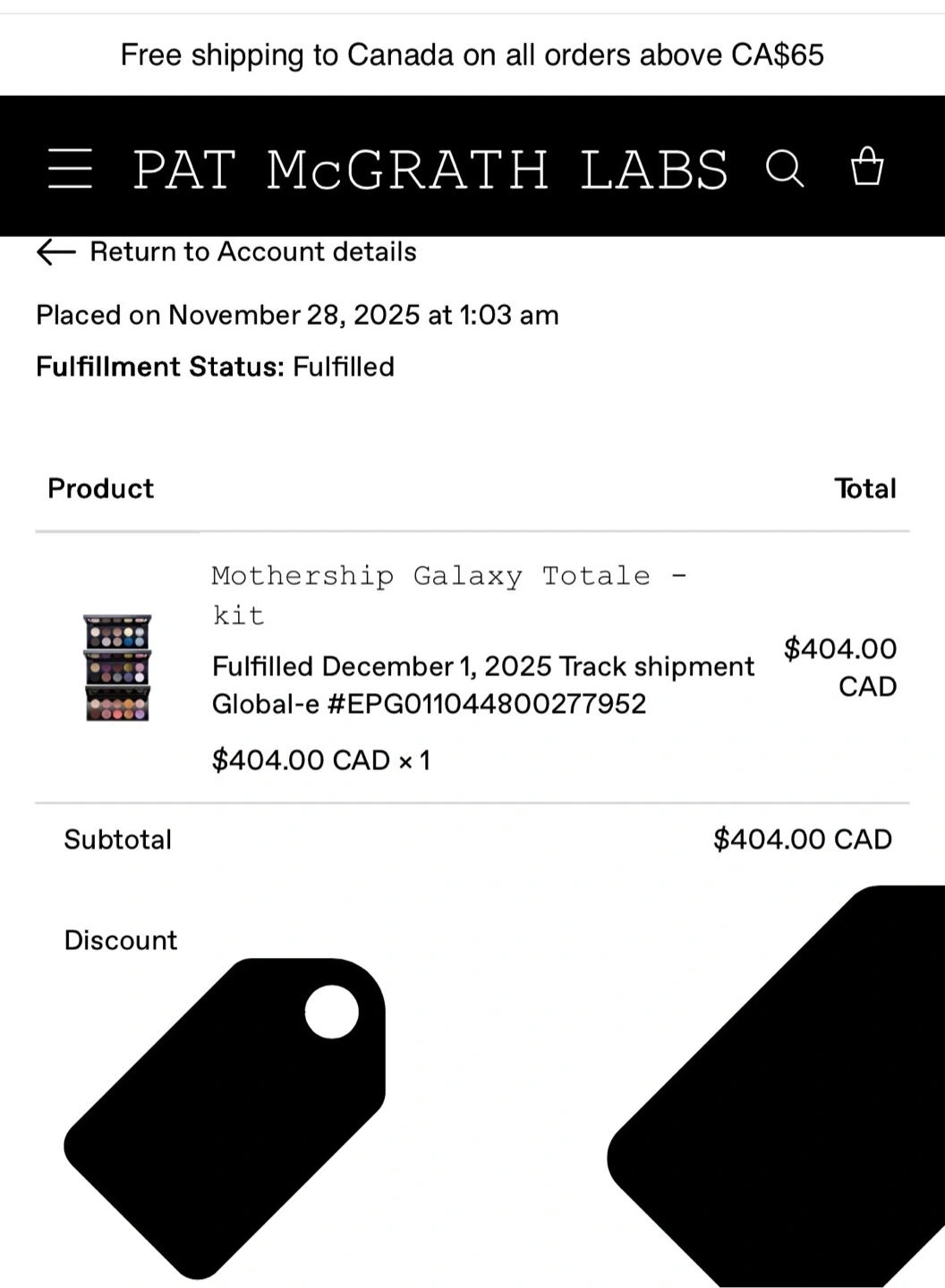 Selling a Pat McGrath Labs Mothership Galaxy Totale Kit. It was placed on November 28, 2025 and fulfilled December 1, 2025. Bought an extra by accident. Tried to contact customer service to cancel/return, but seems like such things doesn’t exits for PAT. The item is still being shipped. Purchase will come with small gift. Could meet downtown, Vaughan, Markham or North York