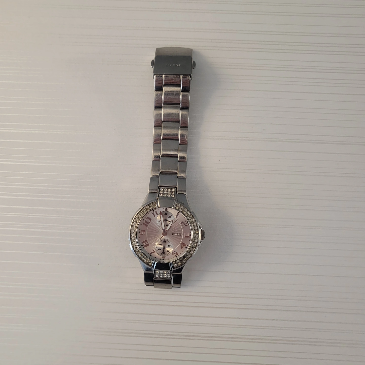 Looking for a flashy watch to match any outfit? Look no further! -Guess watch U12003L1 -Multifunction displaying date and time -Silver finish link bracelet -Crystal studded bezel -One crystal is missing from the bezel -Showing normal wear and tear -Battery is dead from being in storage Ready for a quick, hassle-free pickup near Audley Rd and Bayly St!πŸ“ Thanks and happy holidays, Noah