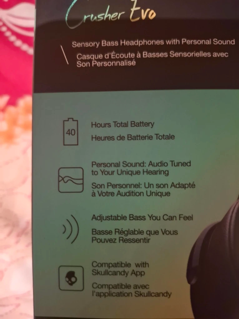 Selling a brand new pair of Skullcandy Crusher Evo headphones! These headphones feature sensory bass, adjustable to your unique hearing. They are also compatible with the Skullcandy app. The box is included, and the headphones are flat-folding and collapsible for easy storage.Not used at all and for this really good and 20 dollars off the real price