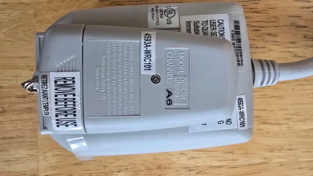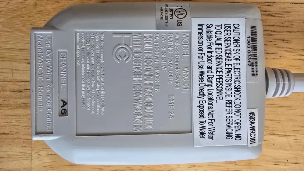 Selling a SYAT outdoor wireless remote switch. It's in great condition and ready to use! Model: WRC101 Wireless Remote Switch Rating: 15A, 120V, 60Hz, 8A (1000W) Tungsten