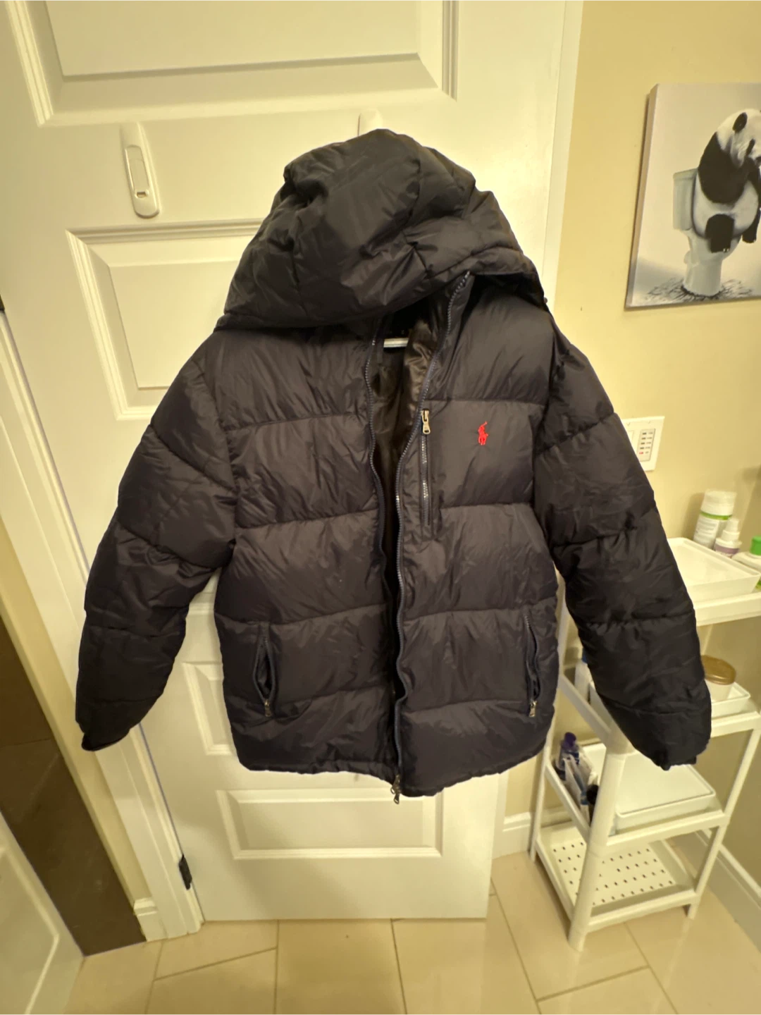 Selling a Polo Ralph Lauren down puffer jacket in size medium. It's a stylish and warm jacket, perfect for the colder months. The jacket is in great condition and ready for a new owner!