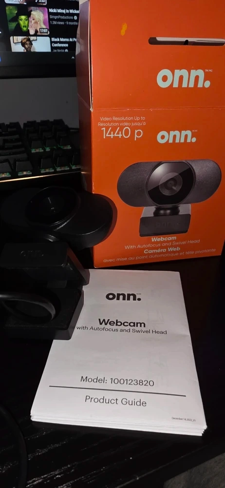 Selling an onn. webcam with autofocus and swivel head. It can record up to 1440p. It's brand new and comes in the original box with the product guide!