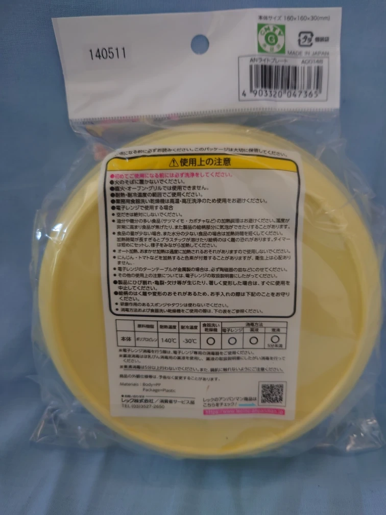 Brand new Anpanman yellow plate, still in its original packaging! This adorable plate is perfect for little ones and features everyone's favourite character, Anpanman! It's dishwasher and sterilizer safe, making it super convenient for busy parents