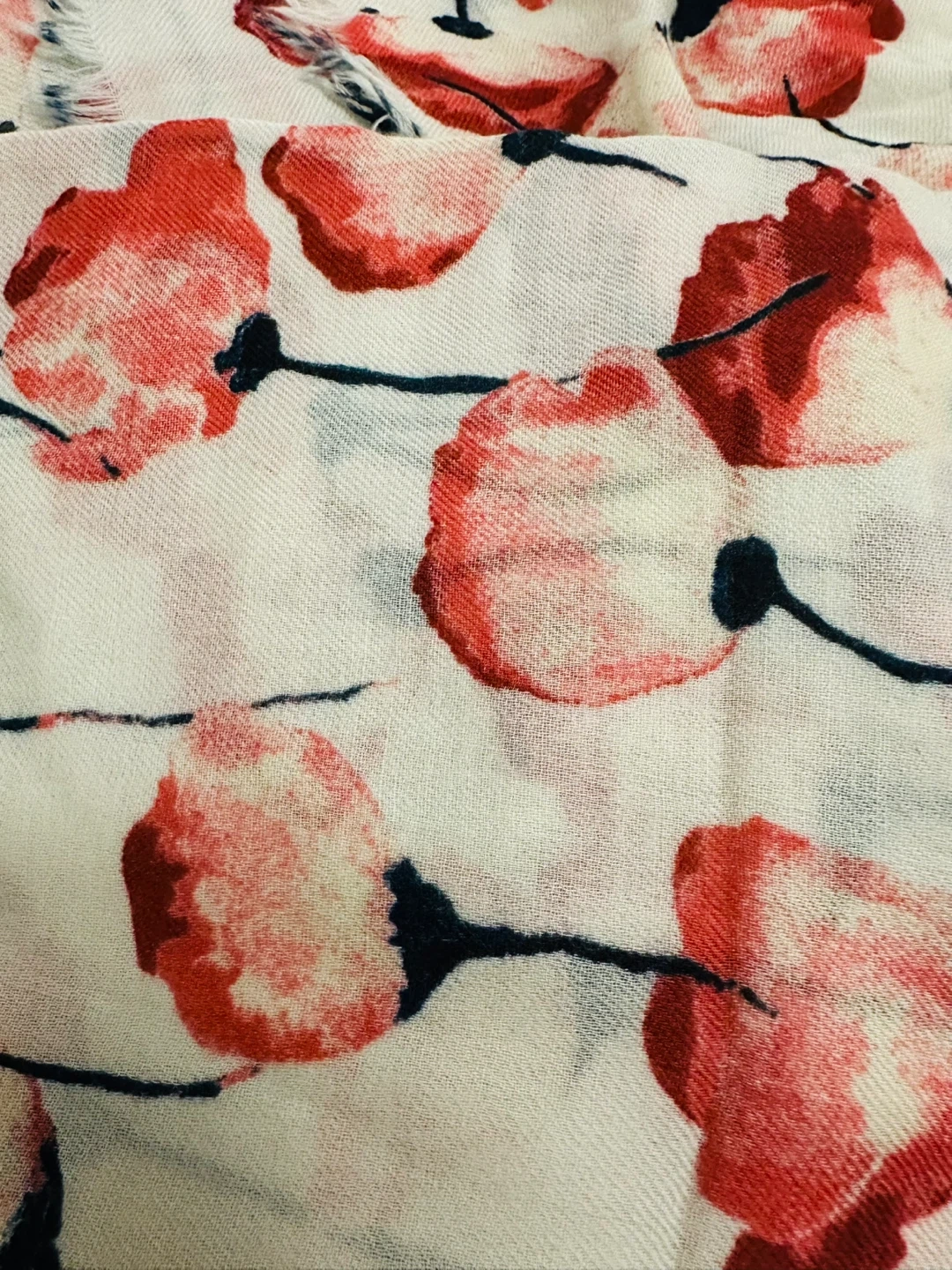 Aritzia Wilfred scarf featuring a beautiful floral design. It's one size and made of 100% wool. Perfect for adding a touch of elegance to any outfit!