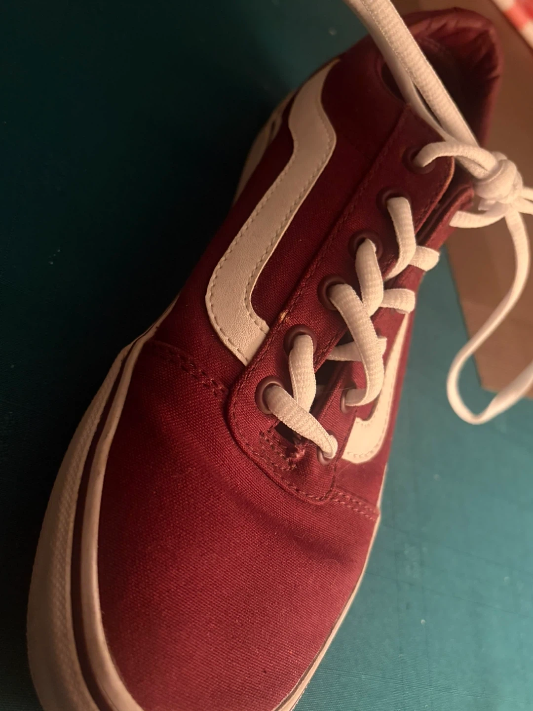 Selling a pair of Vans Ward low-top sneakers in a lovely burgundy colour. They're in great shape and ready for a new adventure!