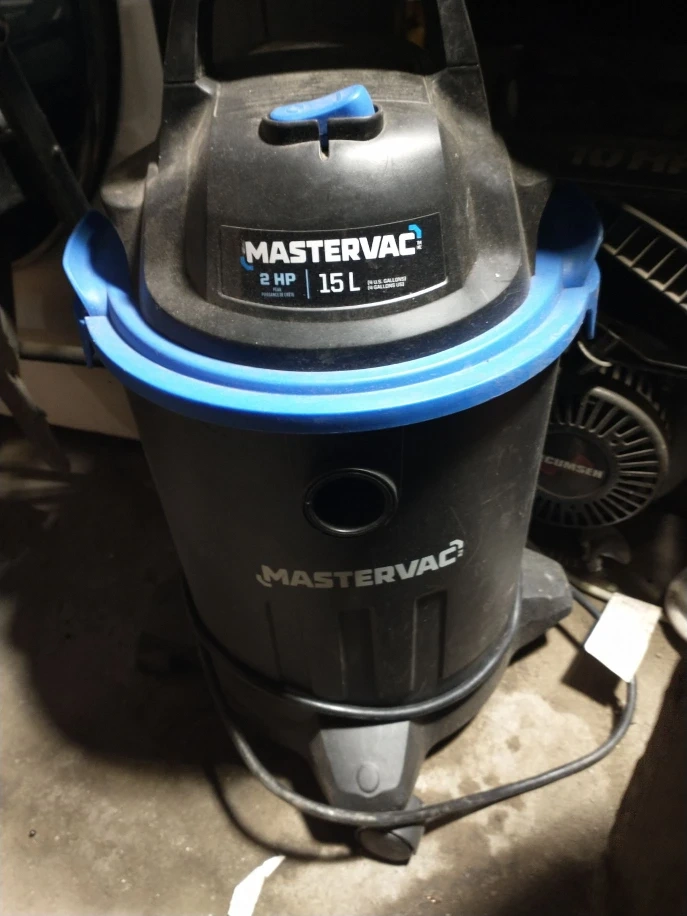 Selling a Mastervac wet/dry vacuum. It's 2 HP and has a 15 L capacity. Perfect for cleaning up around the house or in the garage!