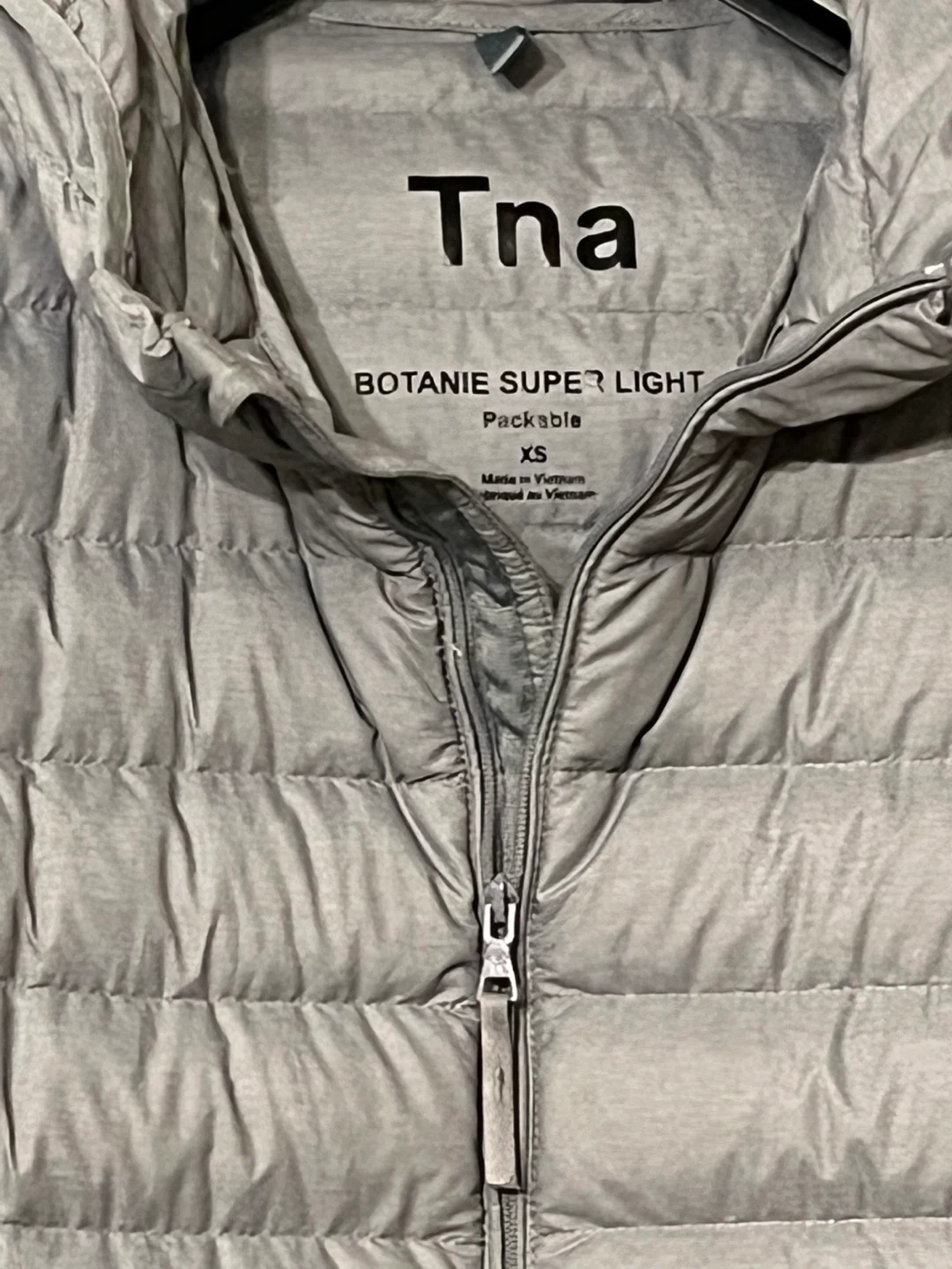 TNA Botanie Super Light packable puffer jacket in Women’s size XS! It's a stylish and lightweight jacket, perfect for the cold weather. This jacket is designed to be packable, making it easy to bring with you on trips or store away when not needed