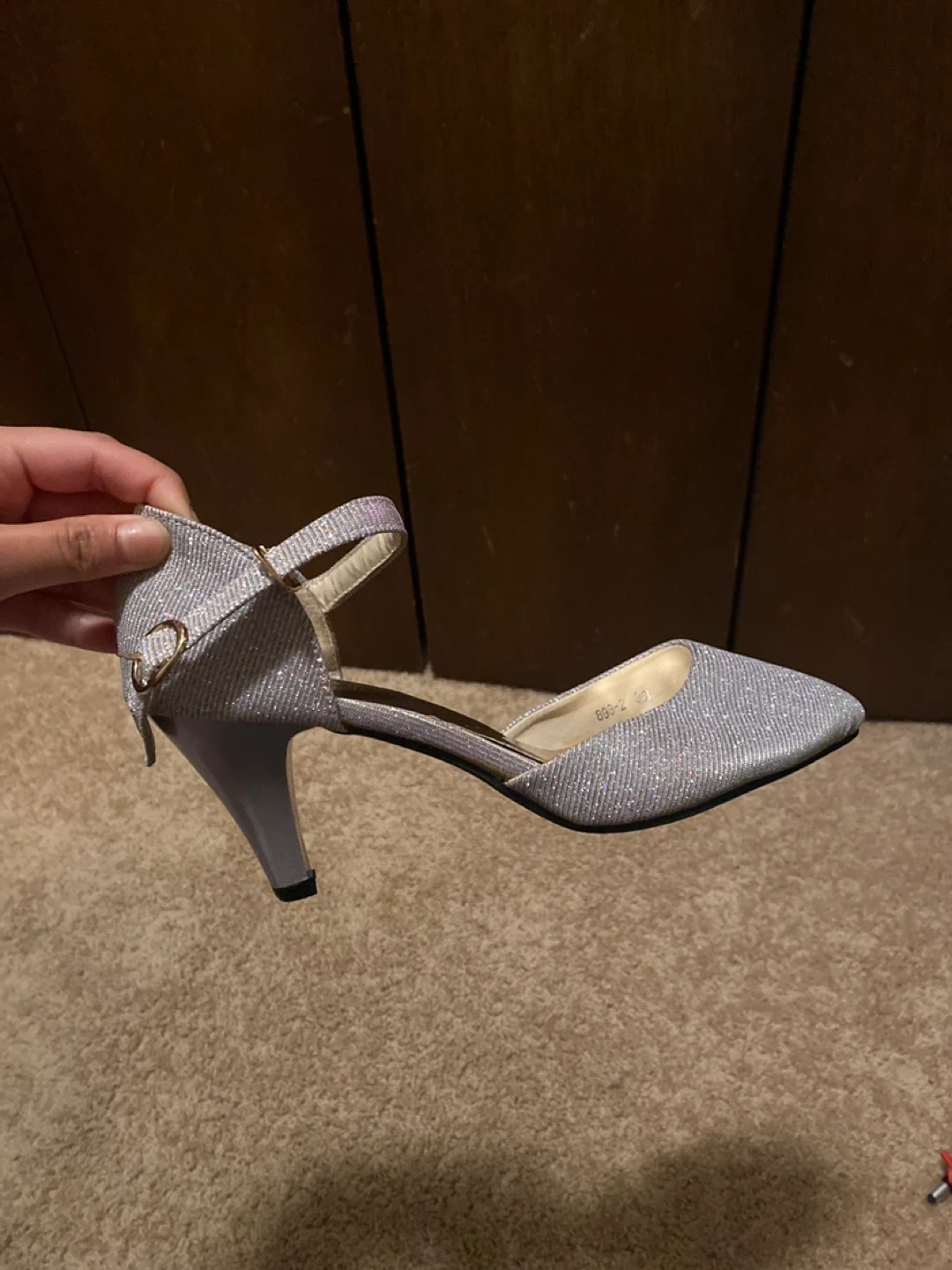 Buy & SellSparkly Silver Ankle Strap HeelsSparkly Silver Ankle Strap Heels$8These sparkly silver heels feature an ankle strap and are perfect for a special occasion! They're in good condition.ConditionGoodSize7.5WHERE TO MEETCheck LocationView MapSELLERverifiedRanuNorthwest Calgary1145 reviews0 chats·0 favorites·17 viewsSEND CHAT TO SELLERHi Ranu! I’m interested in your listing.Hi Ranu! I’m interested in your listing.Get the Karrot app to chatSign In to chat