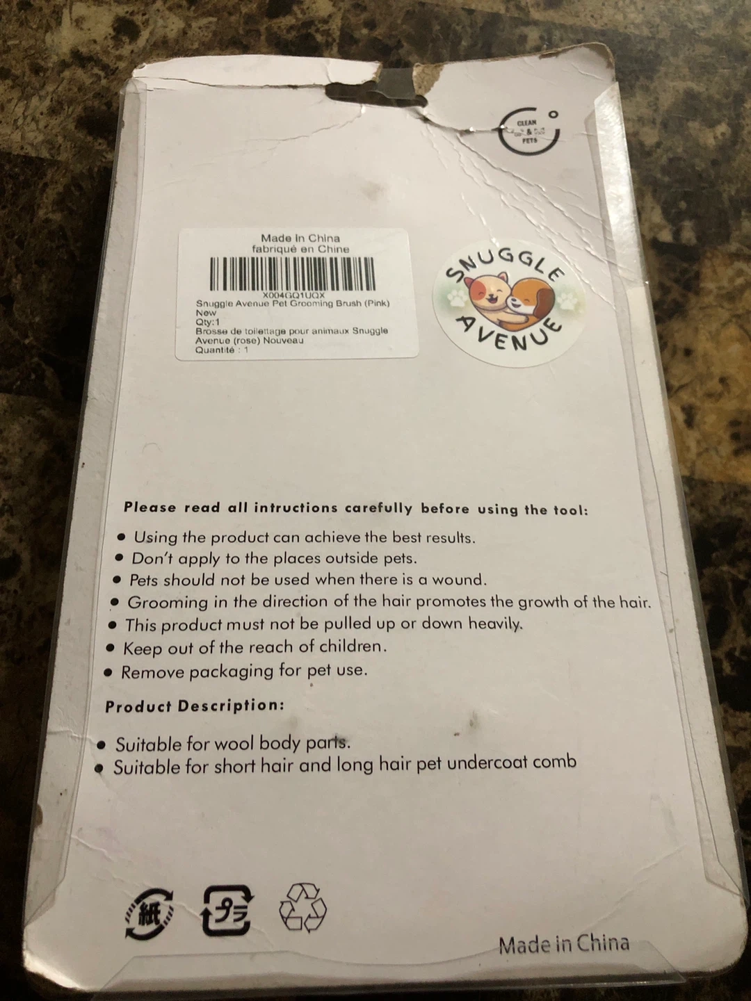 I'm selling a brand new Snuggle Avenue pet grooming brush! It's pink and suitable for both cats and dogs. It also comes in its original packaging.