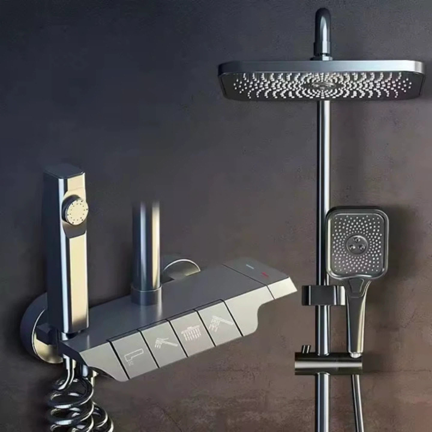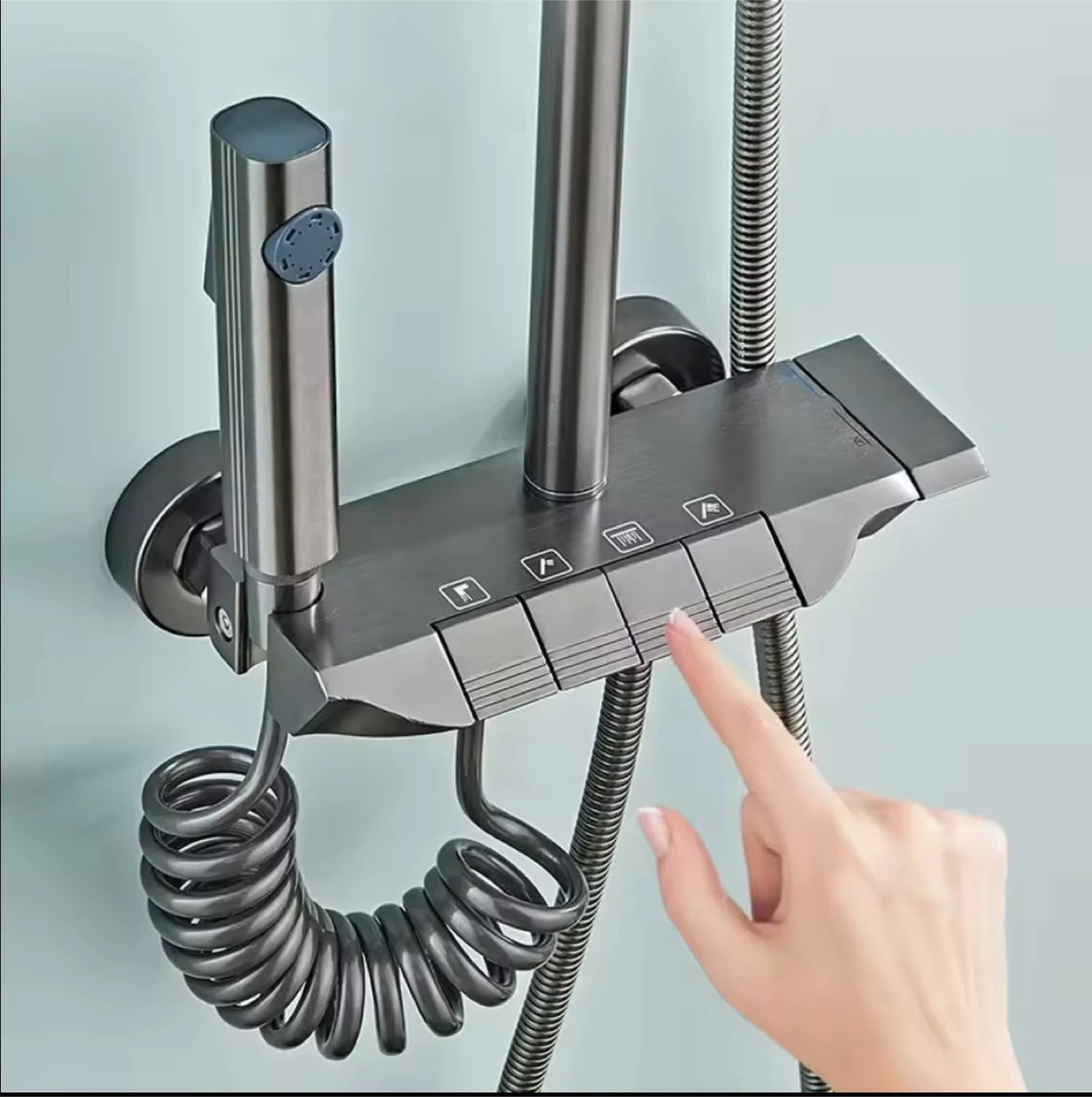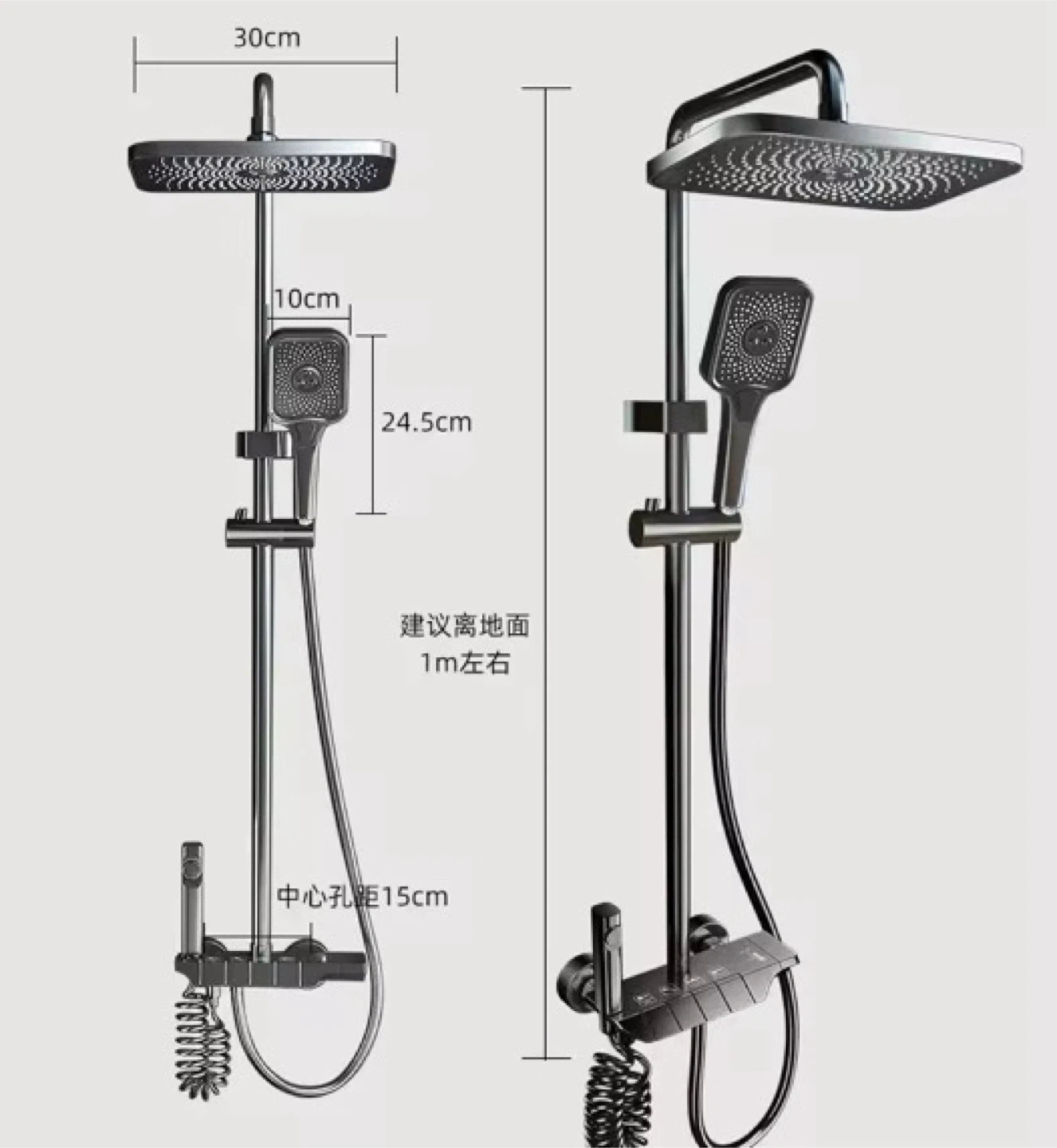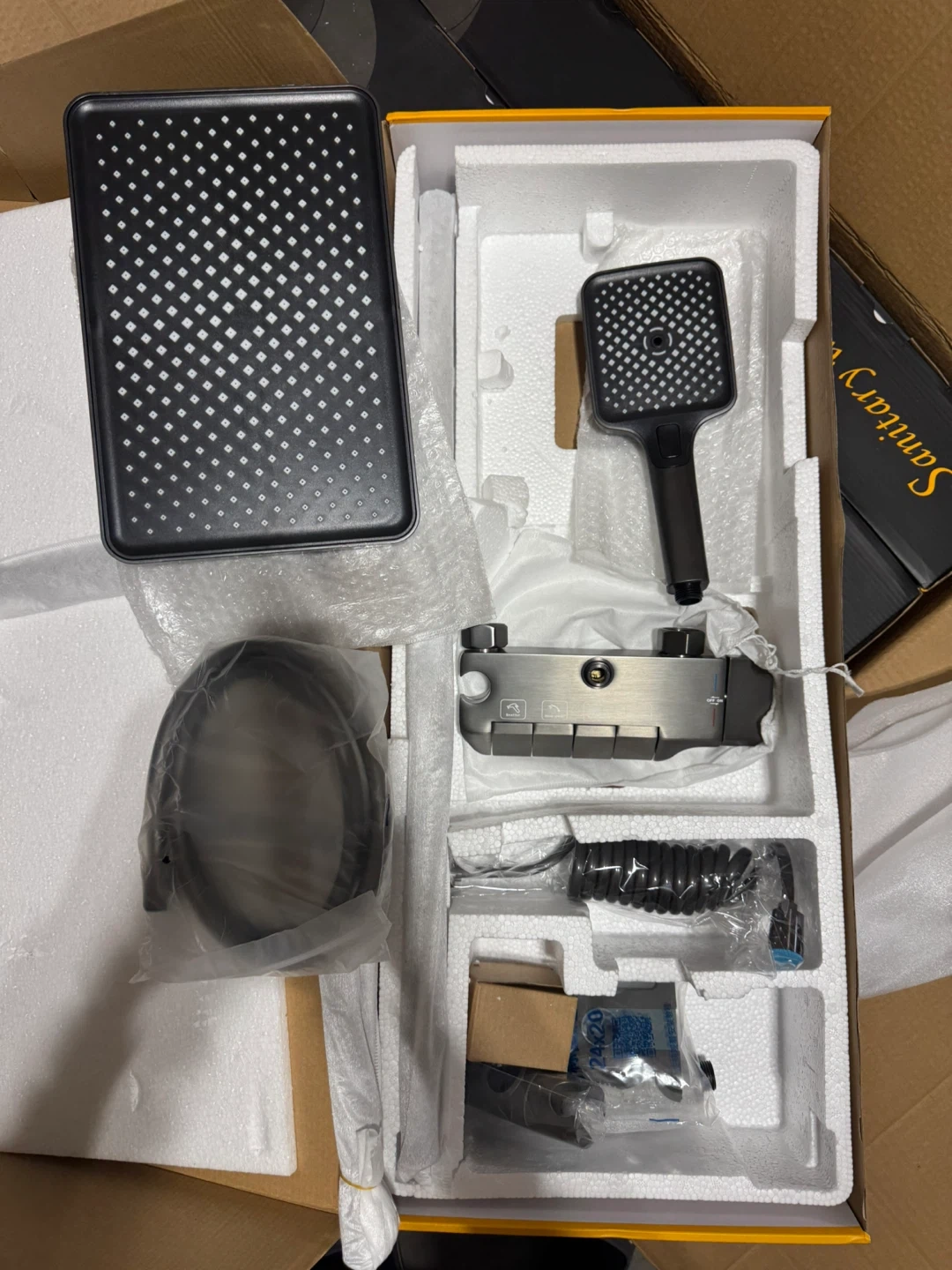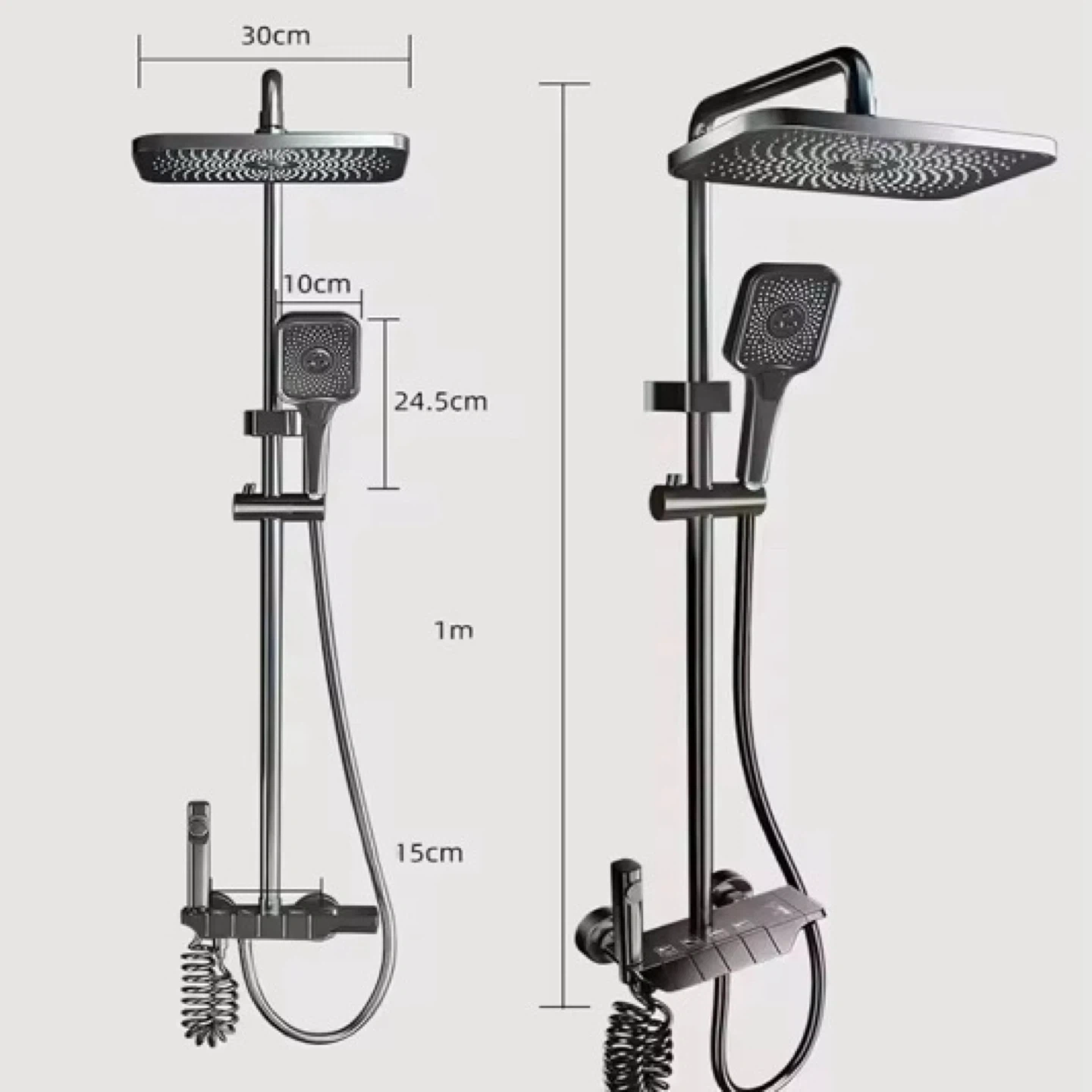 Selling a modern shower panel system in great condition! The shower head is 30cm wide, and the handheld shower is 10cm wide and 24.5cm long. It would be a great addition to any bathroom