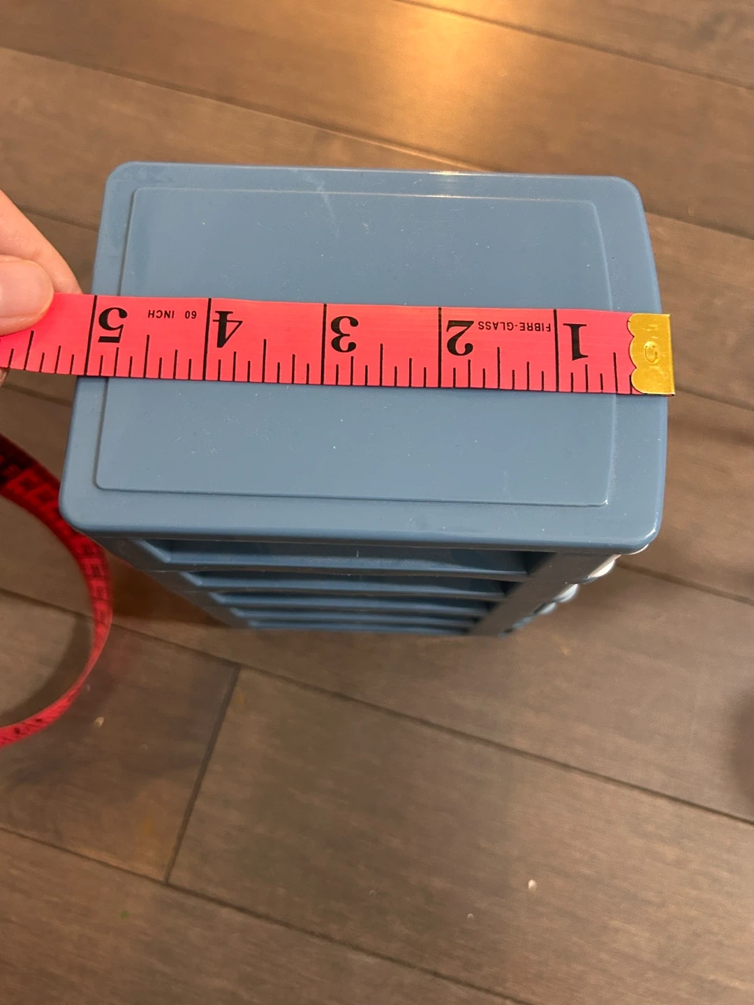 Here's a cute mini drawer organizer! It features a gradient of blues, white, and black. It's perfect for storing small items and keeping your space tidy. The dimensions are approximately 4 inches wide and 5 inches long