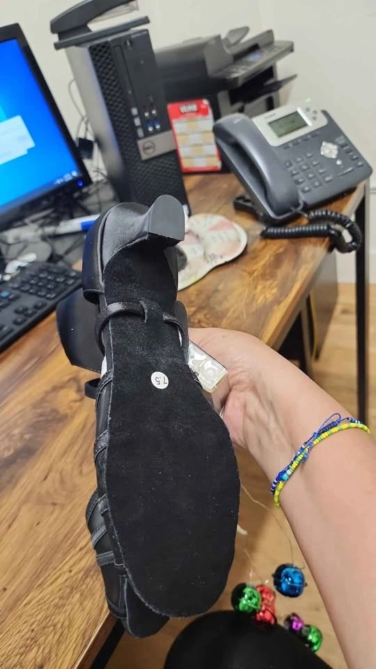 SALSA Tango Ballroom dance shoes. Given to me Ima sz 8. Never worn. No box. Not sure of brand doesn't have. Color is black. Suede on bottom for spinning on the floor. Happy dancing. Also work by Wall Street area so can pick up around there too.