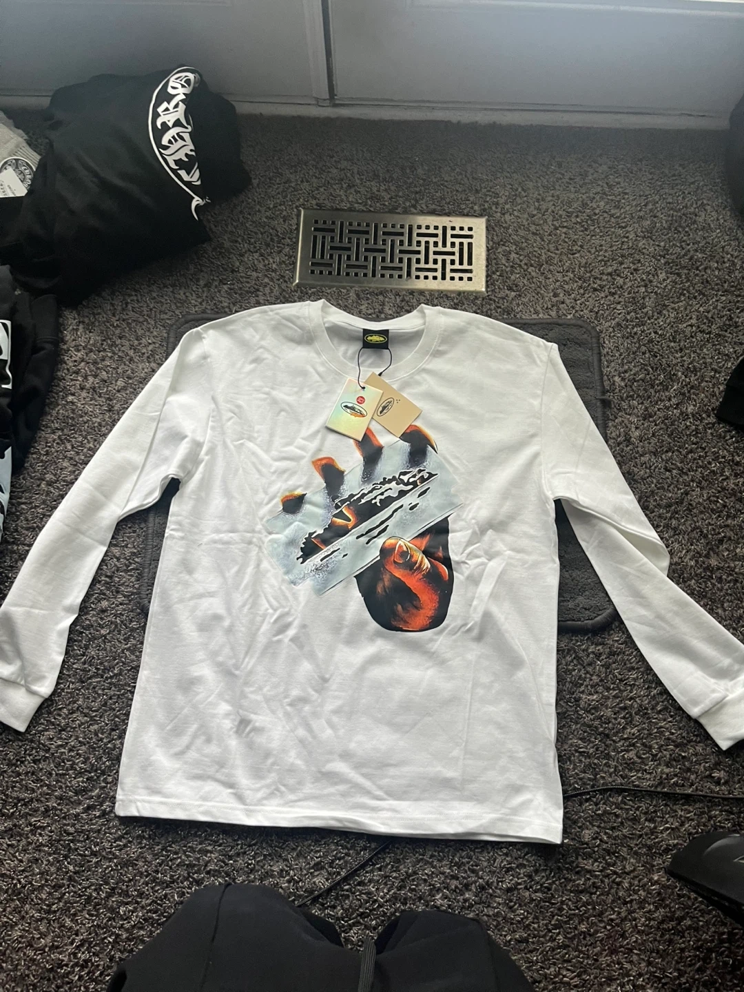 Here's a brand new white long sleeve shirt from Corteiz ! It's a size medium and features a unique design. Perfect for adding some style to your wardrobe