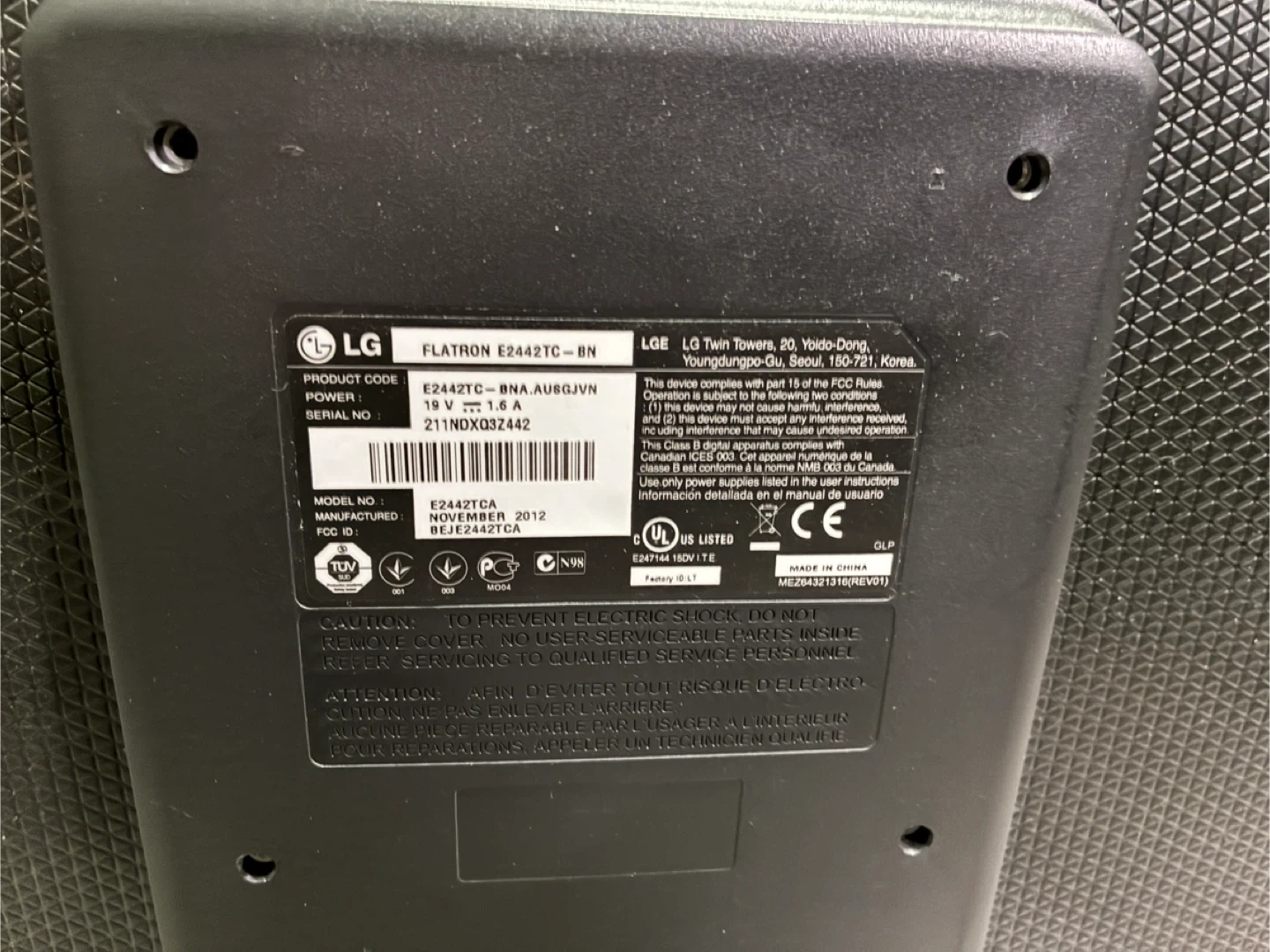 Buy & SellLG Flatron E2442TC-BN 24" MonitorLG Flatron E2442TC-BN 24" Monitor$50Selling an LG Flatron E2442TC-BN monitor! It's a 24-inch monitor that's in good working condition. It comes with the power adapterConditionGoodBrandLGWHERE TO MEETCheck LocationView MapSELLERverifiedHaoLiverpool762 reviews0 chats·0 favorites·4 views