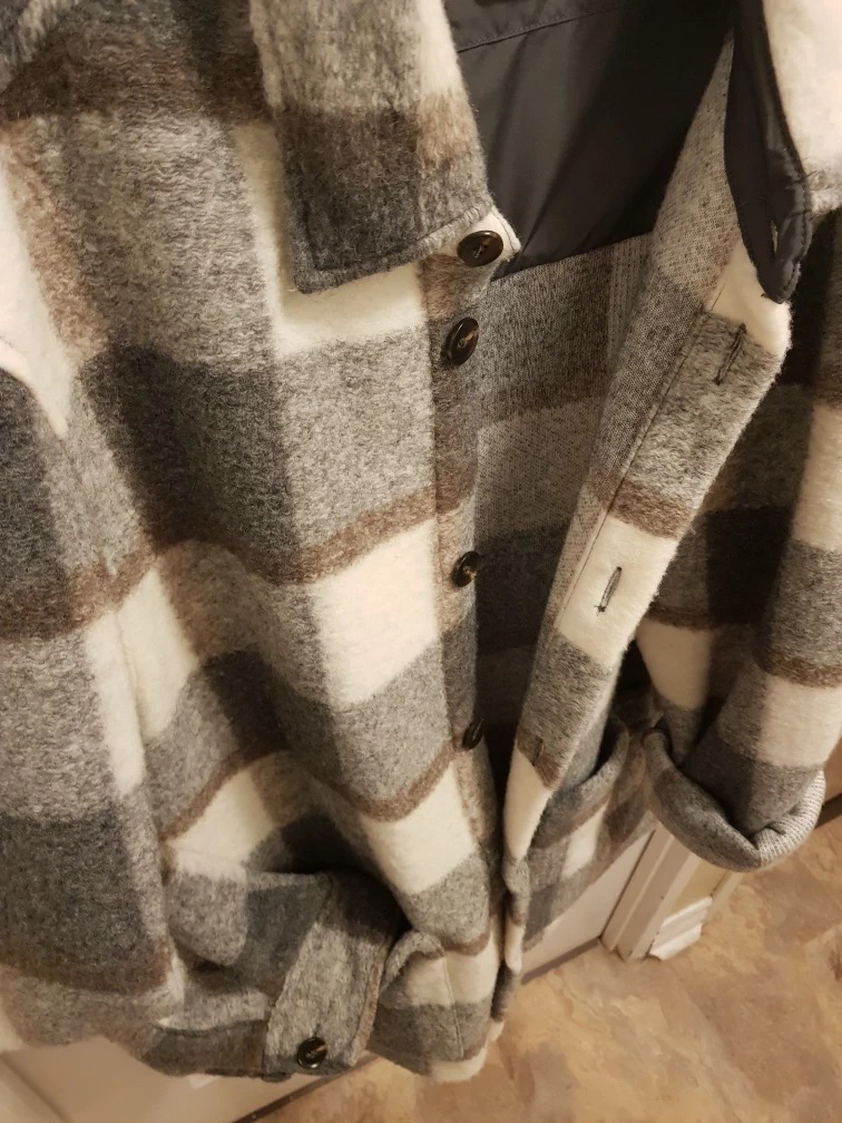 Cozy MNG Man overshirt in a stylish plaid pattern! This wool blend overshirt is perfect for layering. It's a size XL and in great condition. A great addition to any wardrobe!
