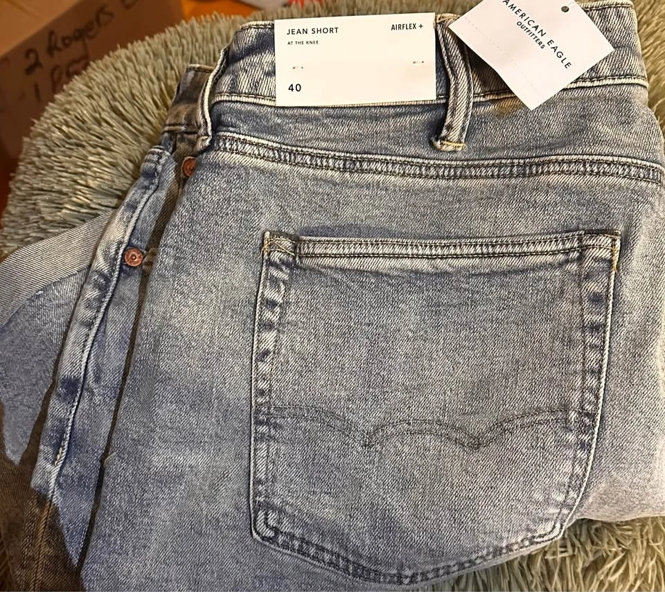 Get ready for summer with these American Eagle denim shorts in size 40! feature a stylish light wash. Perfect for casual outings or weekend adventures.