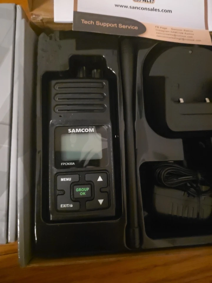 Selling a brand new SAMCOM FPCN30A two-way radio! It comes complete with its original box and all the included each radio don't come with battery pack selling them for a low price