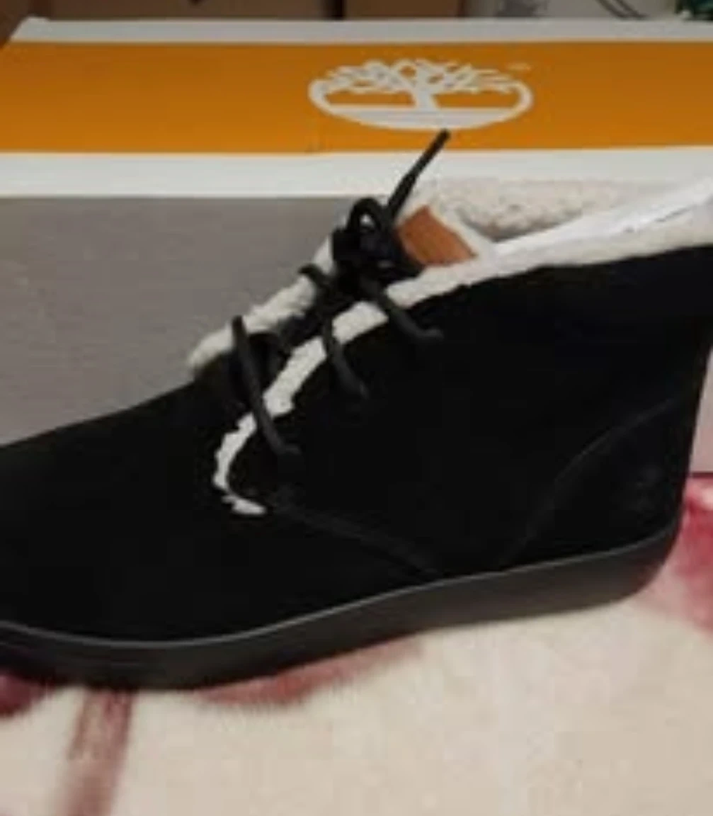 Selling a pair of Timberland boots in black suede with shearling trim. They are in excellent condition and come with the original box! Perfect for keeping your feet warm and stylish during the colder months