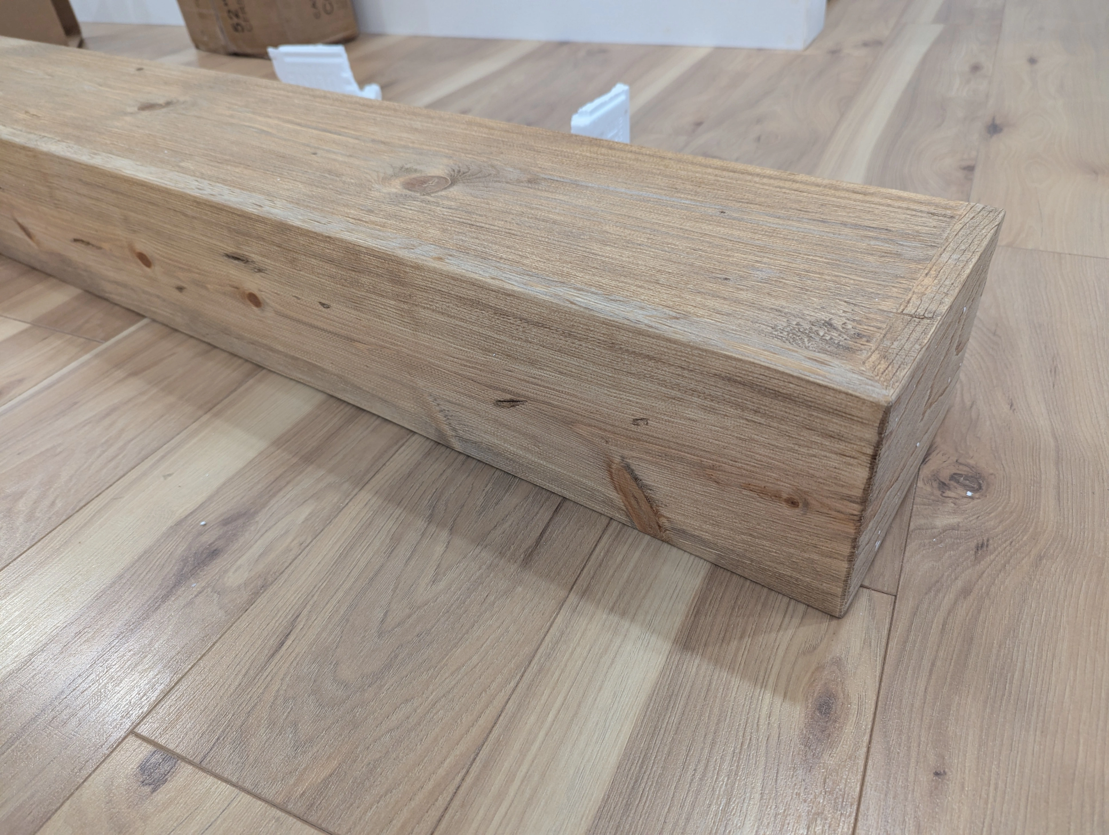 Even though it looks custom-made. The unique hollow construction keeps the farmhouse fireplace mantel lightweight.
