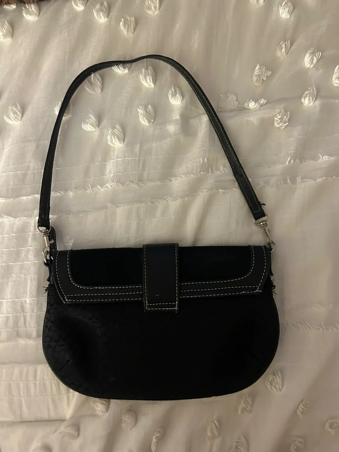 Selling a cute Coach shoulder bag in black! It's in good condition has some natural wear perfect for everyday use. The bag features a buckle closure and a classic design.